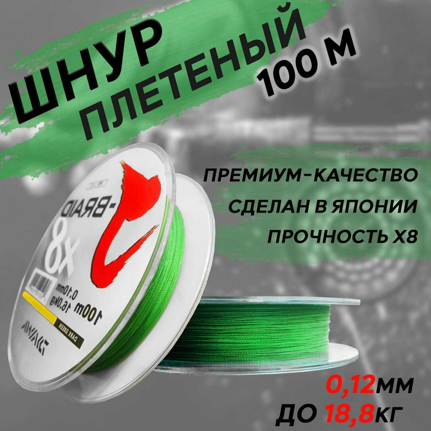Шнур плетеный для рыбалки 0.12 мм 18.8 кг J-BRAID X8 Восьмижильный информация: