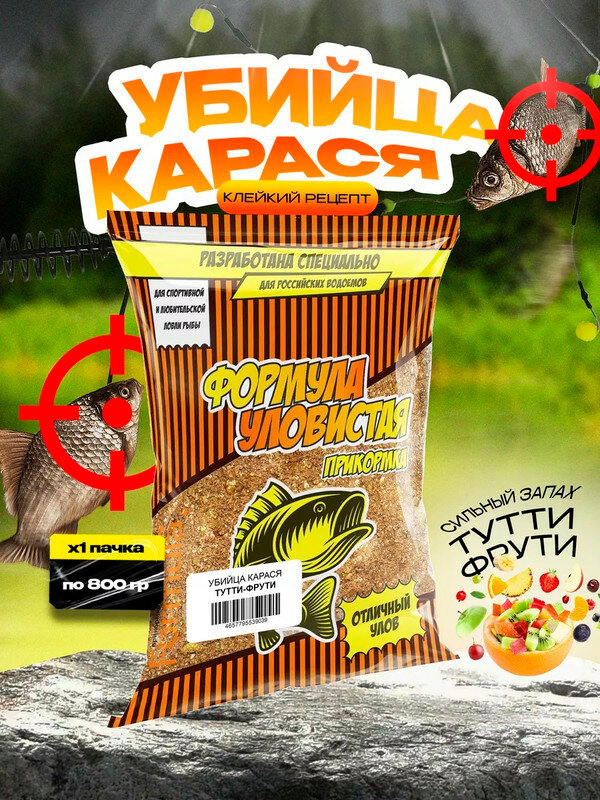 Прикормка "уловистая" 0,8кг убийца карася - клейкий рецепт (тутти-фрути) набор 5 штуки по 0,8 кг информация: