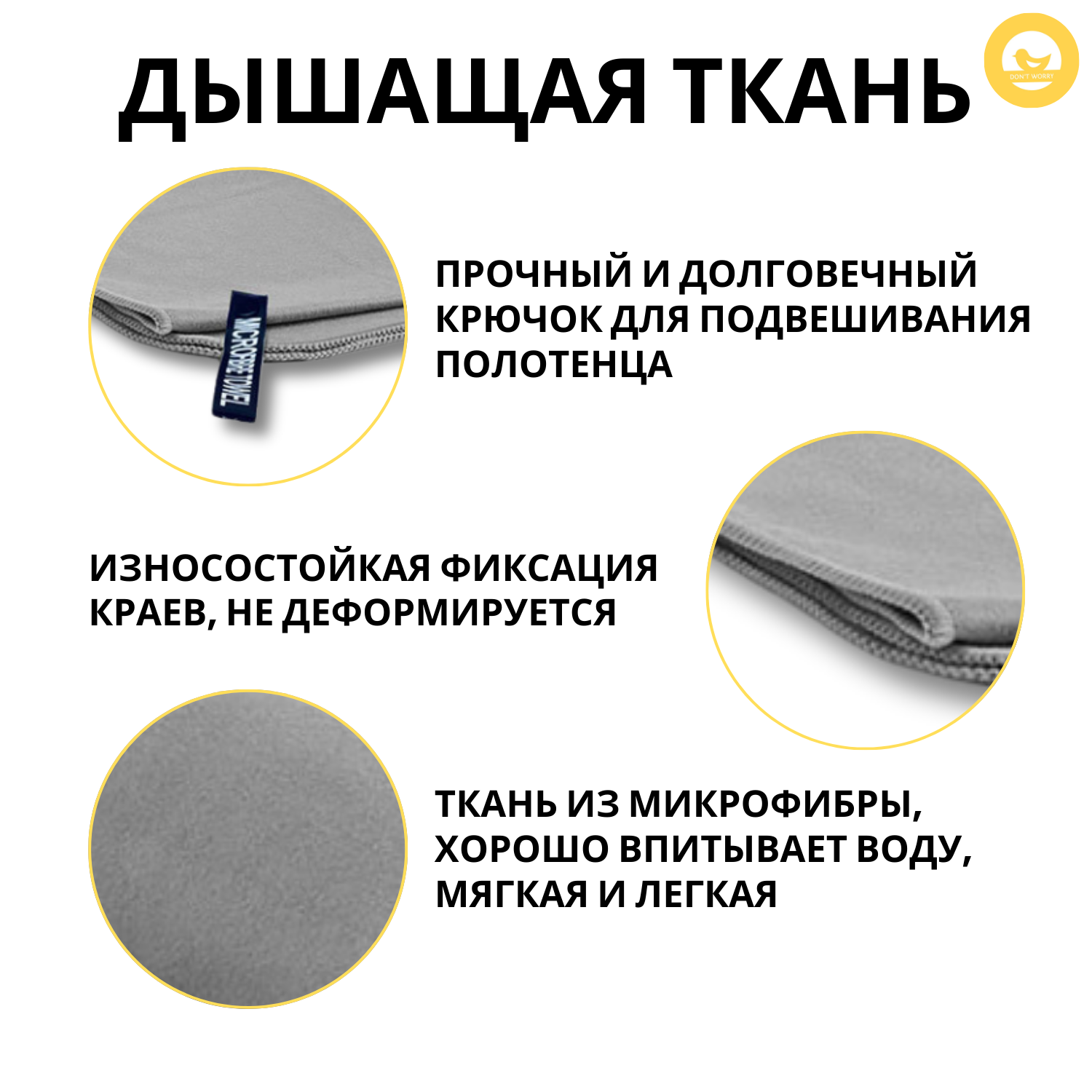 Комплект спортивных полотенец для фитнеса, сауны, бани и йоги из микрофибры. Цвет серый (76х152 + 40х80) информация: