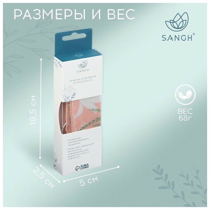 Ремень для йоги Sangh Flowers, 180х4 см, цвет бежевый информация: