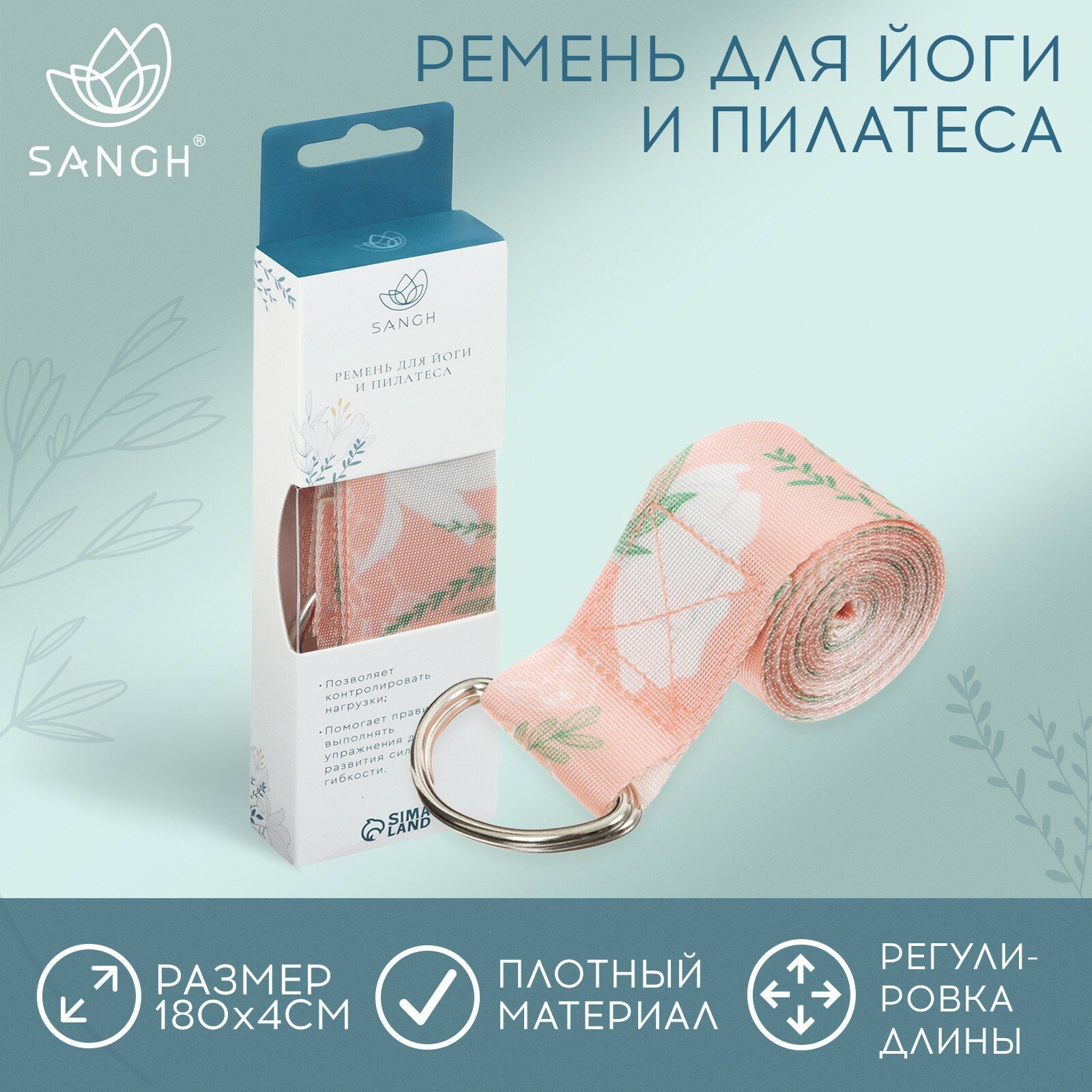 10 цен на Ремень для йоги Sangh Flowers, 180х4 см, цвет бежевый