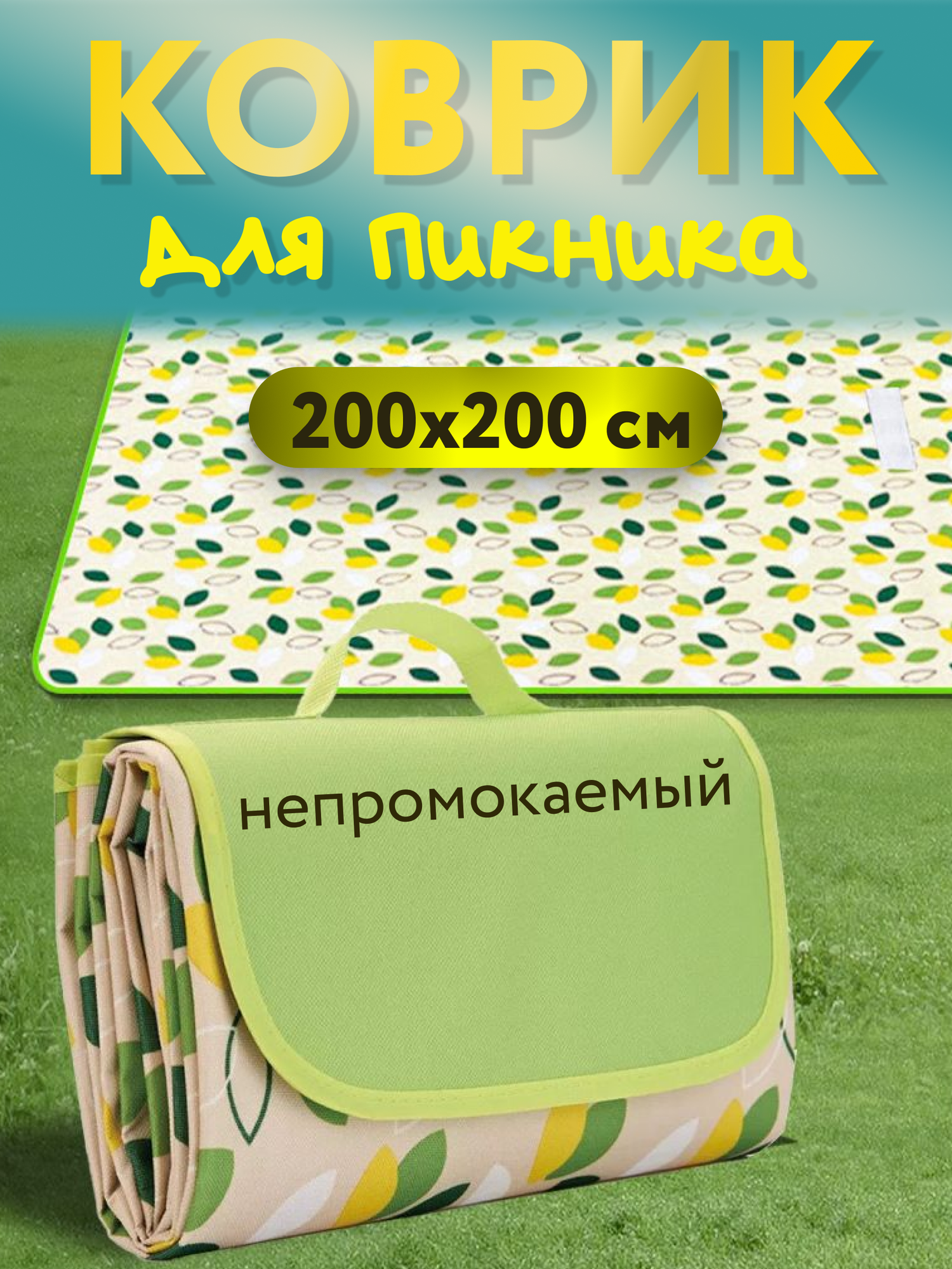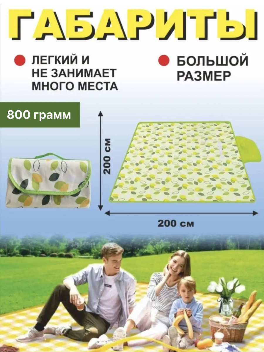 Непромокаемый складной туристический коврик для пляжа и пикника 200х200 см, зеленый информация: