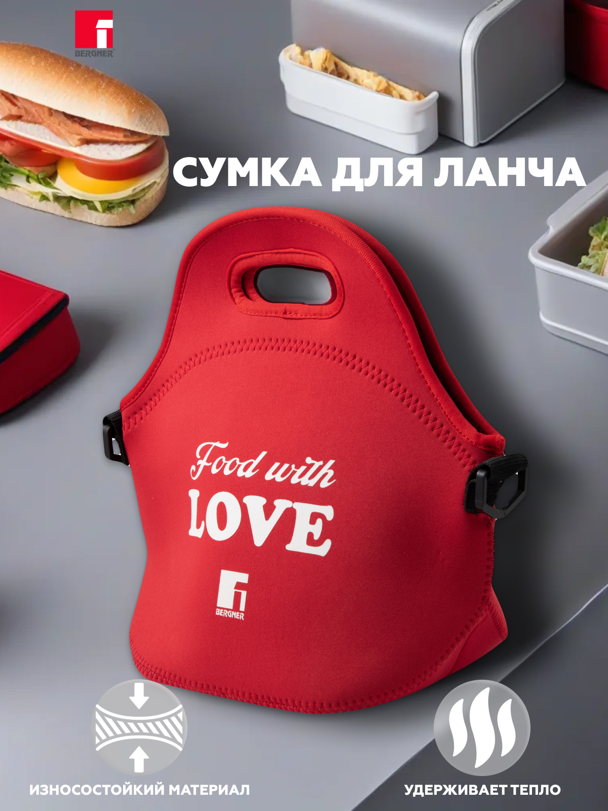 Отзывы на Сумка для ланча BERGNER из неопрена, размеры 30 х 29 х 17 см, красная