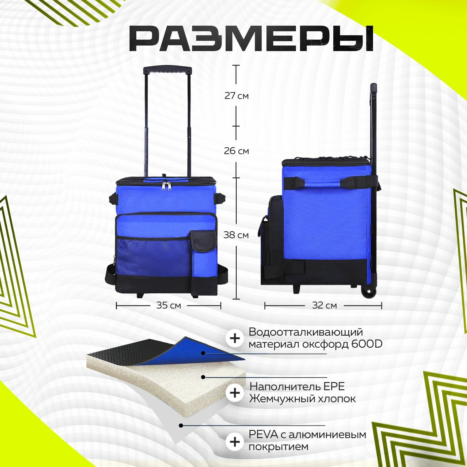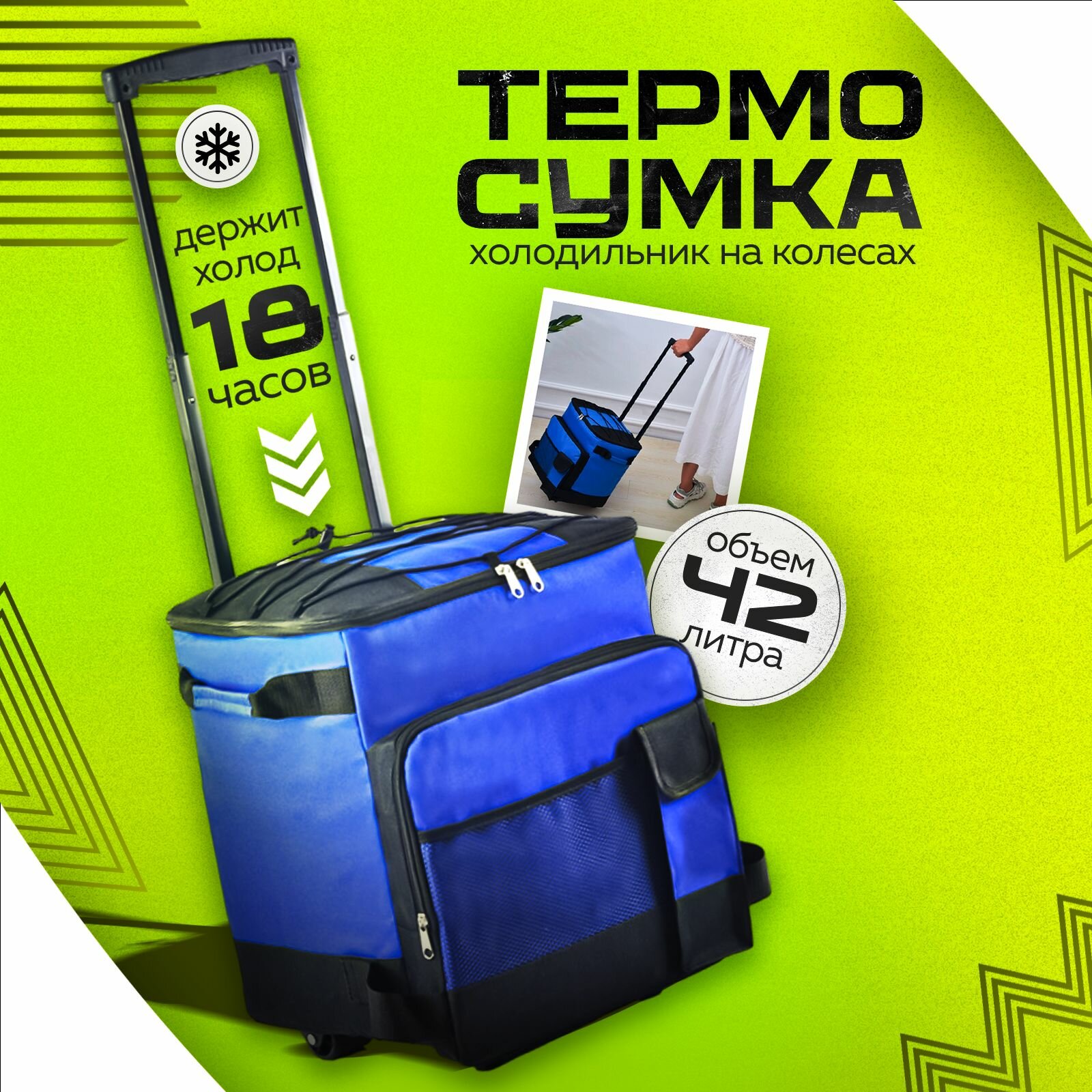 Термосумка с колесиками и ручкой, сумка-тележка холодильник, 42 литра информация: