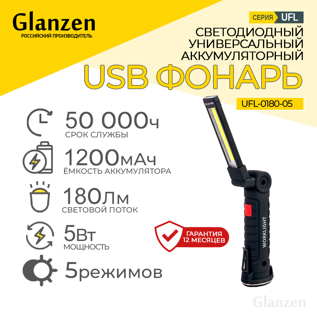Светодиодный универсальный аккумуляторный USB фонарь UFL-0180-05 информация: