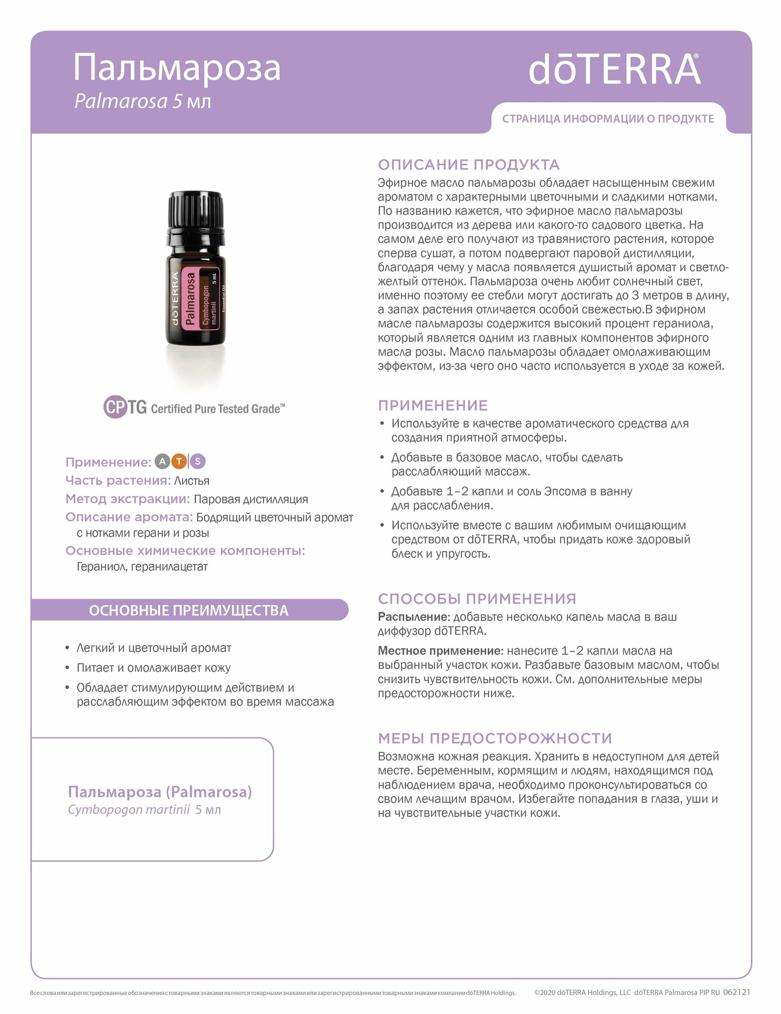 DoTERRA Эфирное масло Пальмароза, 5 мл информация: