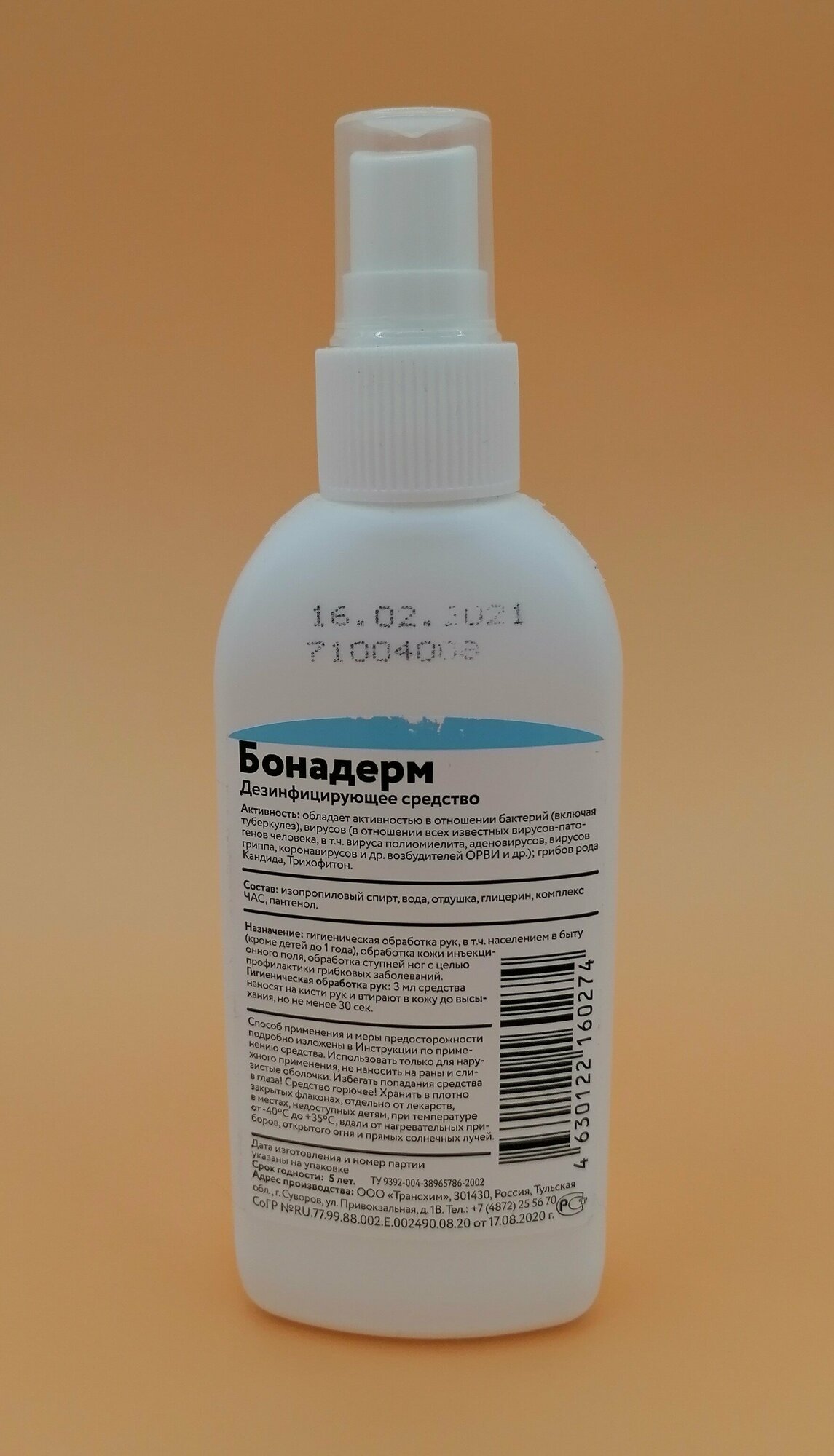 Отзывы на Антисептик спрей для быстрой дезинфекции Бонадерм готовый раствор спирта 60%, 100 мл, 1 шт, тип крышки: спрей.