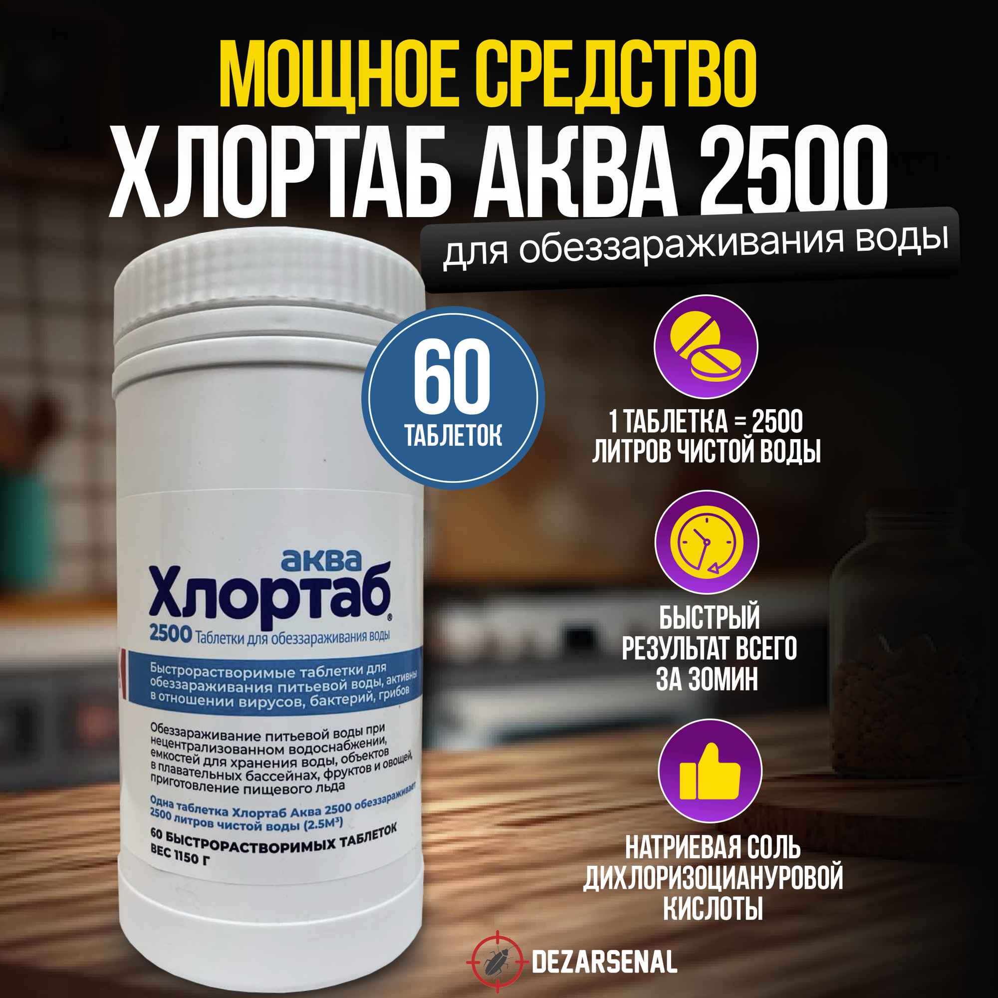 10 цен на Дезинфицирующие таблетки Хлортаб Аква 2500 60 таблеток