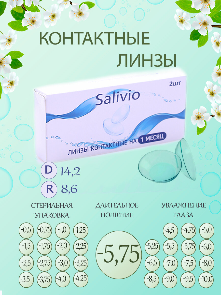 Контактные линзы, SALIVIO, -5,75 ежемесячные (30 дней), 2 штуки, прозрачные информация: