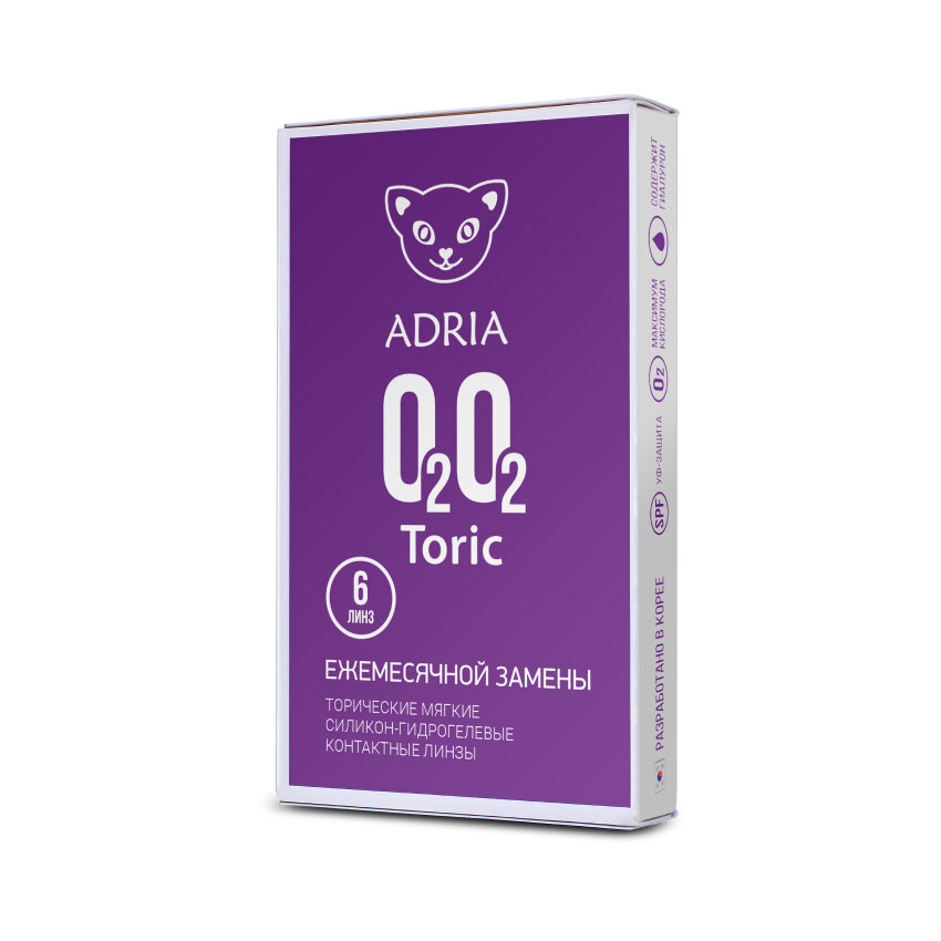 Астигматические линзы Adria O2O2 Toric, ежемесячные, SPH -0,50, CYL -1,75, AX 020 / 14,2 / 8,6 / 6 шт. 2 350 ₽