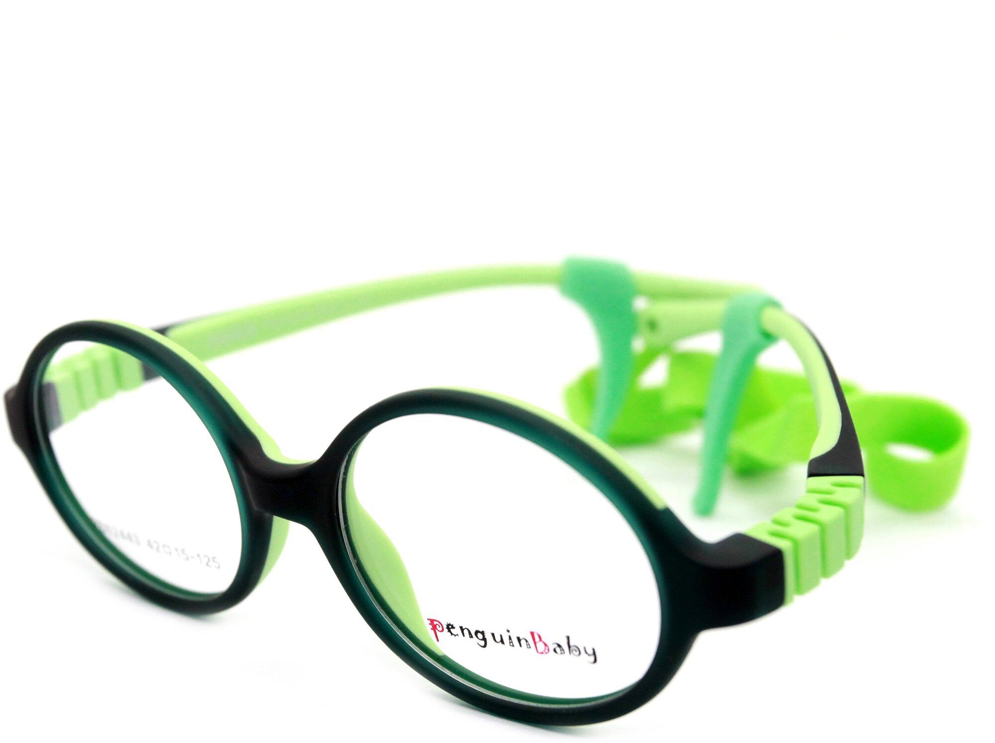 10 цен на Антивандальная оправа детская (3-5 лет) круглая со стопперами и с резинкой Penguin Baby PB62443-C7, цвет черно-салатовый, с футляром и салфеткой