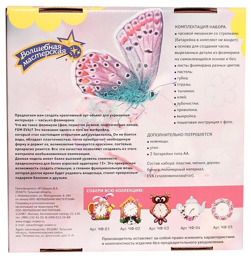 Часы из фоамирана "дыхание ЛЕТА" набор для творчества ЧФ-05 информация: