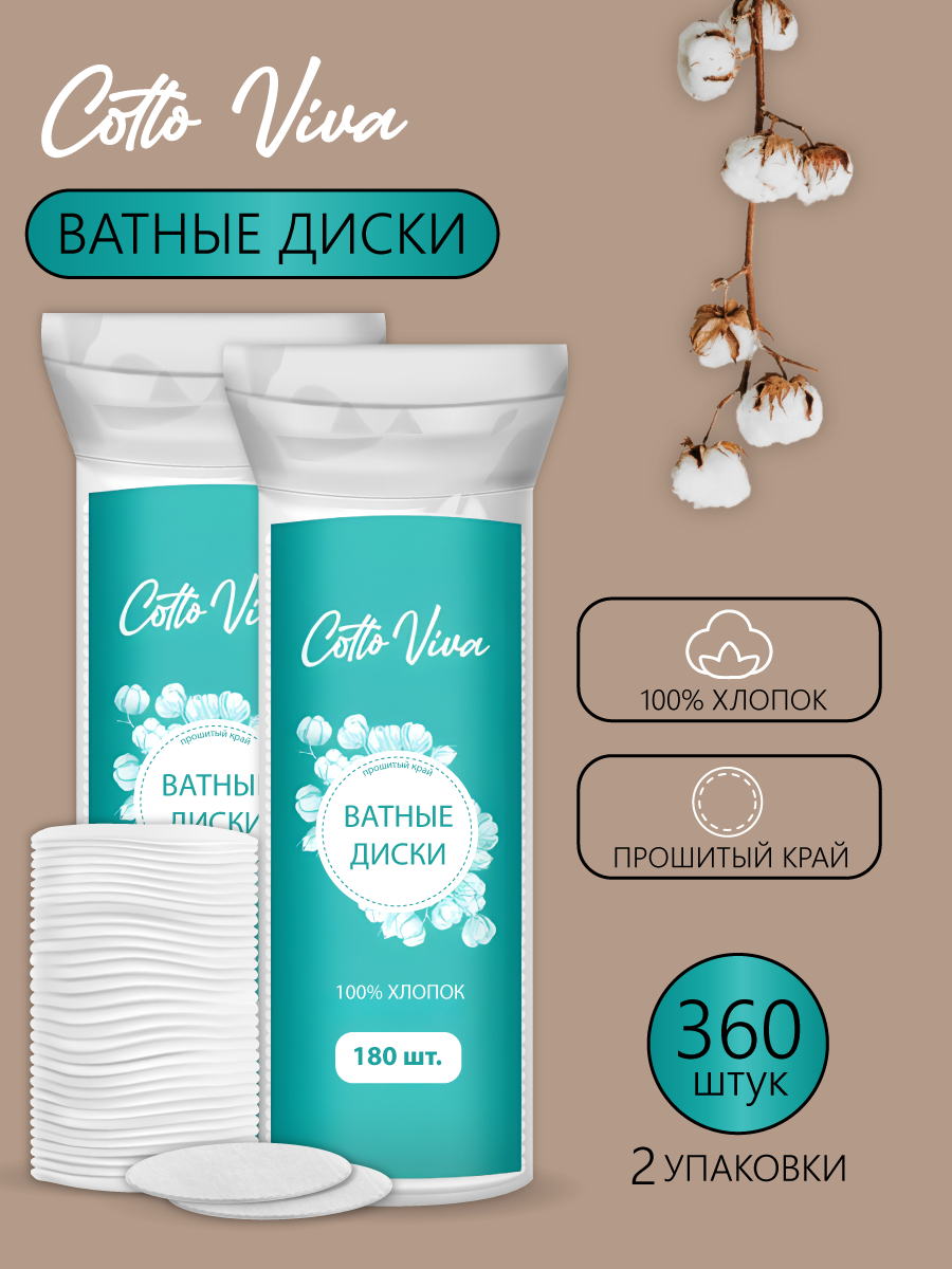 10 цен на Ватные диски, Cotto Viva, хлопковые, набор - 2 уп по 180 шт.