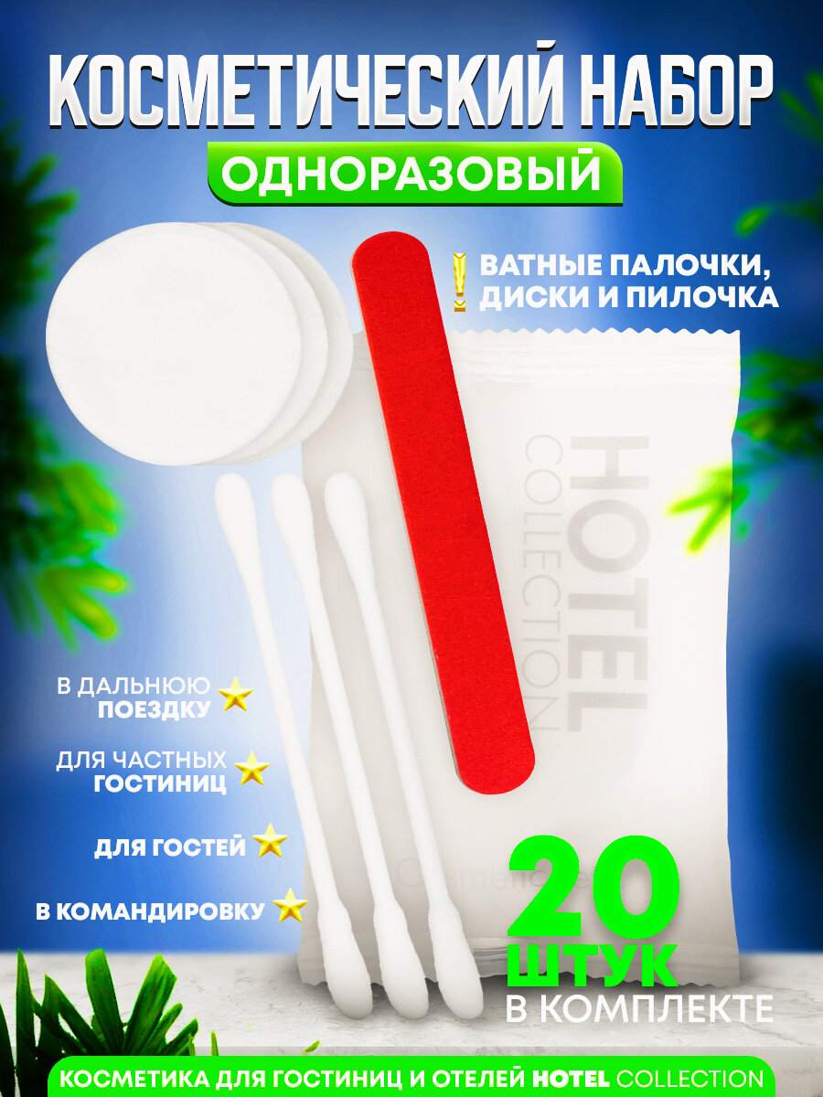 Косметический набор (ватные диски, палочки, пилочка) Hotel Collection, упаковка флоупак - 20 штук информация: