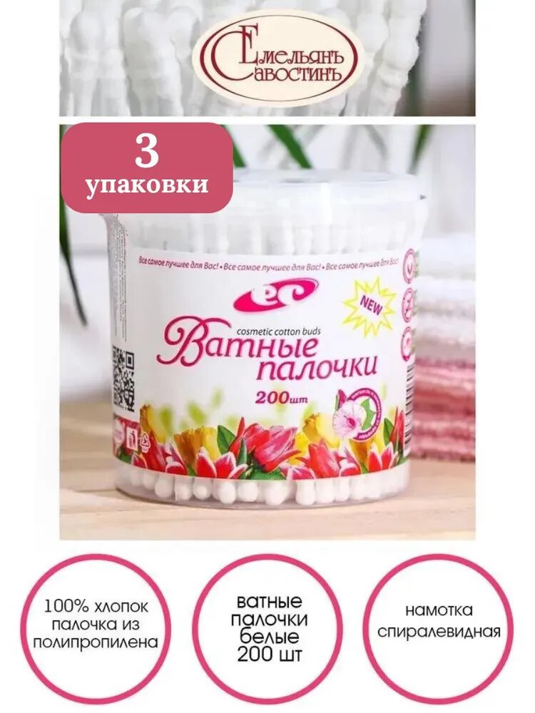 Ватные палочки косметические, спиралевидная намотка, 200 шт/банка, Емельянъ Савостинъ 202 ₽