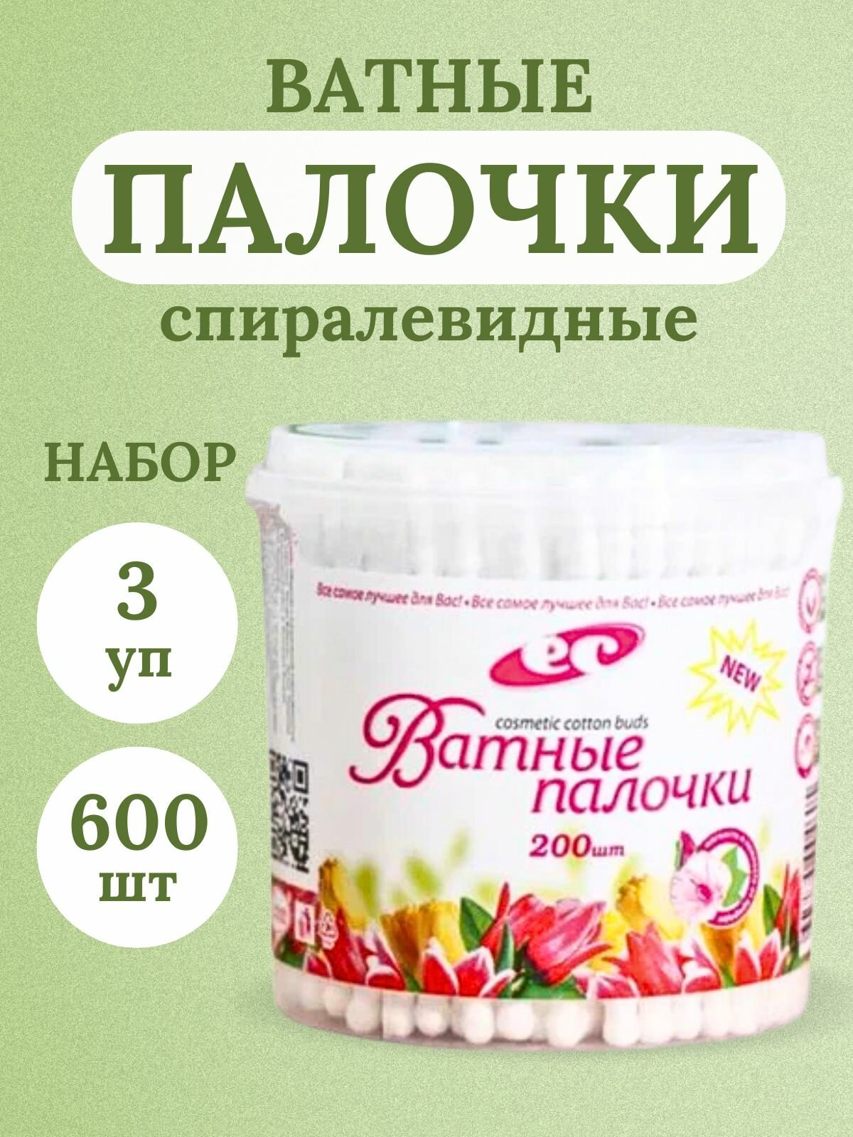Отзывы на KG004605-3шт, Палочки косметические, ватные, спиралевидная намотка, белые, 200 шт/банка