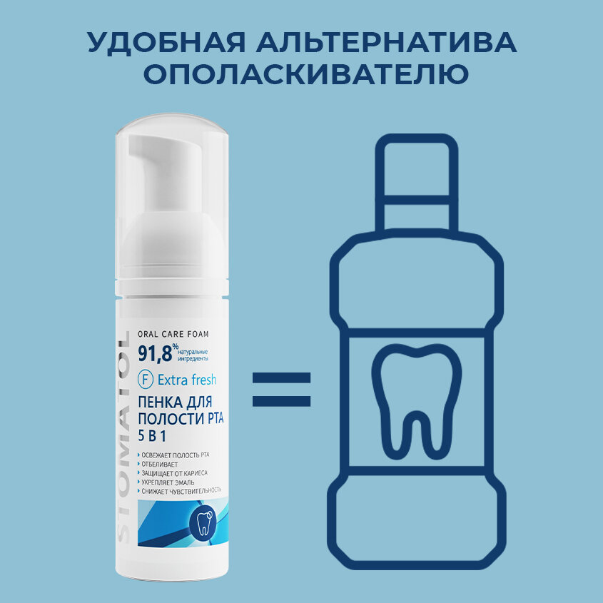 Отзывы на Очищающая пенка для зубов и десен 5в1 STOMATOL Extra Fresh против устойчивого неприятного запаха изо рта 50мл