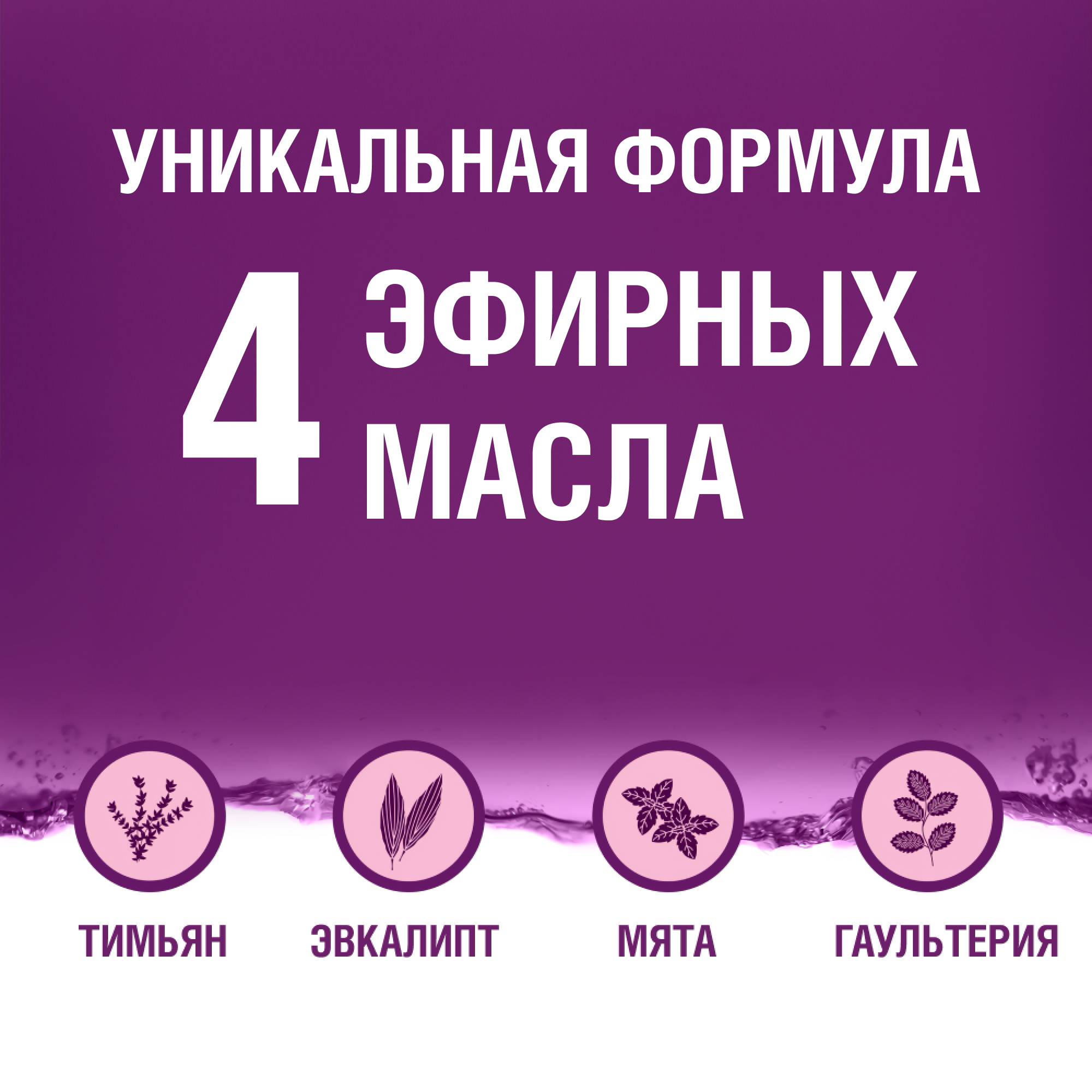 | Состав | Aqua, Benzyl Alcohol, Sorbitol, Propylene Glycol, Sodium Lauryl Sulfate, Poloxamer 407, Benzoic Acid, Zinc Chloride, Eucalyptol, Methyl Salicylate, Thymol, Sodium Saccharin, Sodium Fluoride, Sodium Benzoate, Menthol, Aroma, Sucralose, CI 47005, CI 42053. Содержит фторид натрия (220 ppm F). |