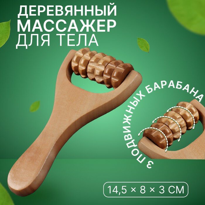 10 цен на Массажёр роликовый, деревянный, с ручкой, универсальный, 14,5 × 8 × 3 см, 3 барабана