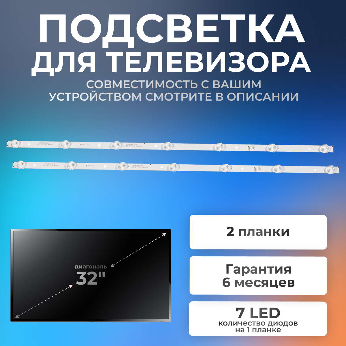 Подсветка для телевизора DEXP H32D8000Q,H32E8000Q, Harper 32R470T, Erisson 32LES78T2W, Hyundai H-LED32R403BT2 информация: