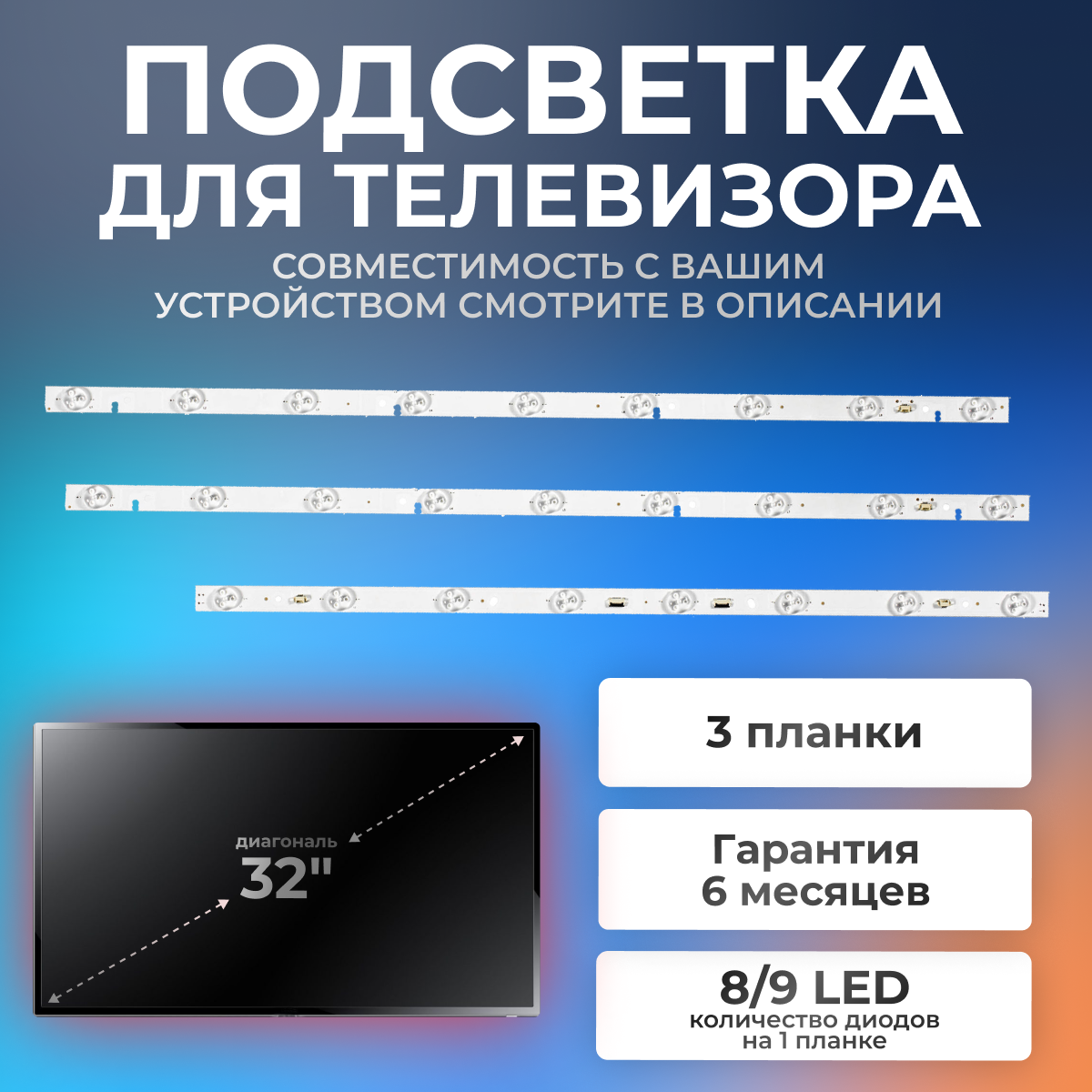 10 цен на Подсветка для телевизоров JVC LT-32M540, LT-32M340W, Mystery MTV-3223LW / 32" 3V 8/9 led (комплект 3 шт) 634mm(560mm)