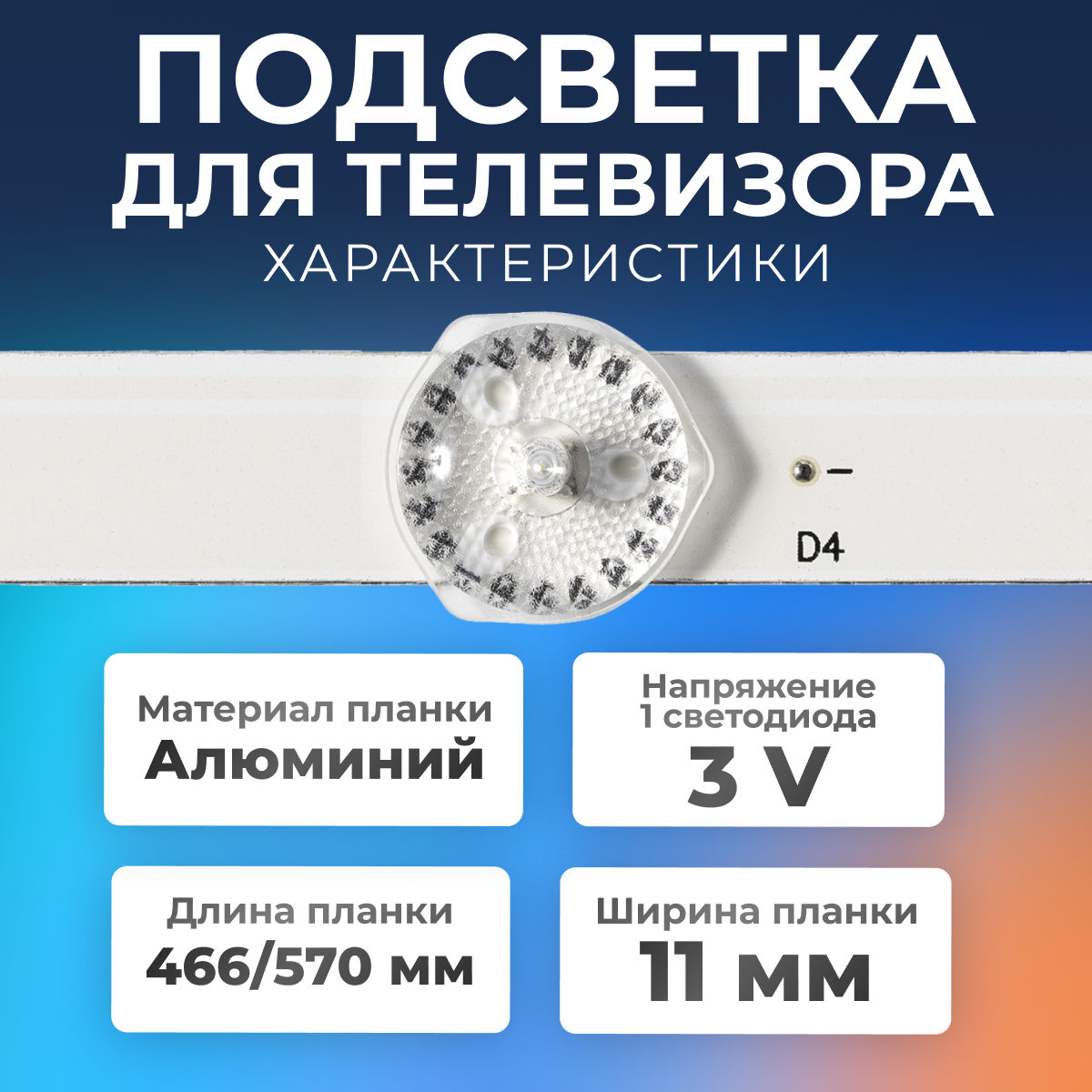 Подсветка для телевизора Philips 32PHT4001, Toshiba 32S1750EV, Panasonic TX-32DR300ZZ, Irbis T32Q44HAL, AOC и др / 32" 3V 8 led ( 3 шт) 620mm