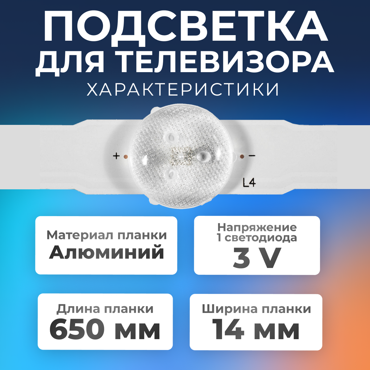 10 цен на Подсветка (комплект) для телевизора Samsung UE32H4000AK, UE32H4290AU, UE32H4510AK, UE32H4270AU и др / 32" 3V 7 led 650mm