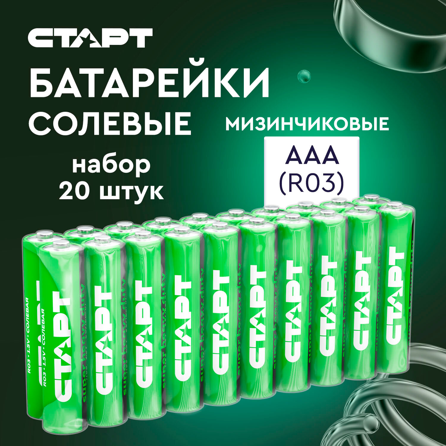 10 цен на Батарейки солевые старт R03-B20, ААА, 20 штук