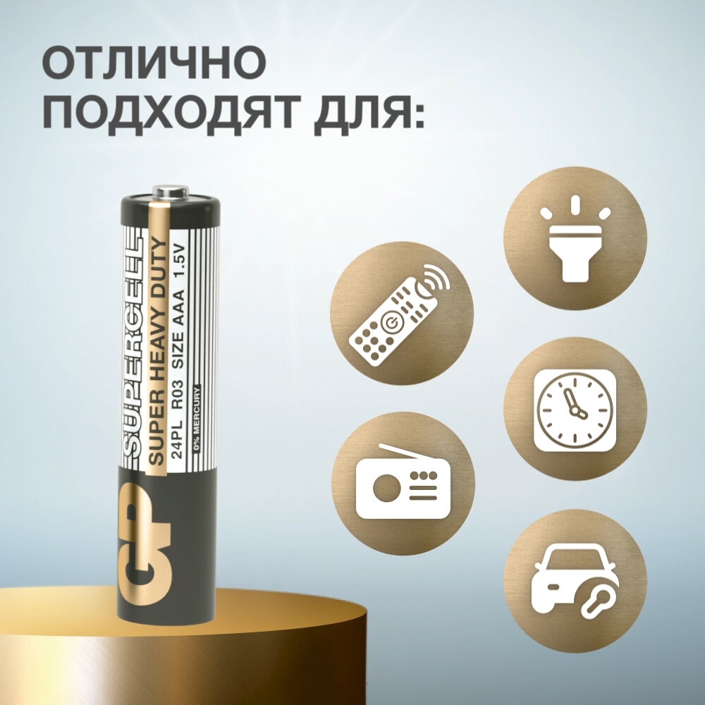 Батарейки ААА мизинчиковые солевые GP 24PLEBRA, 1.5 В, набор 40 шт. информация: