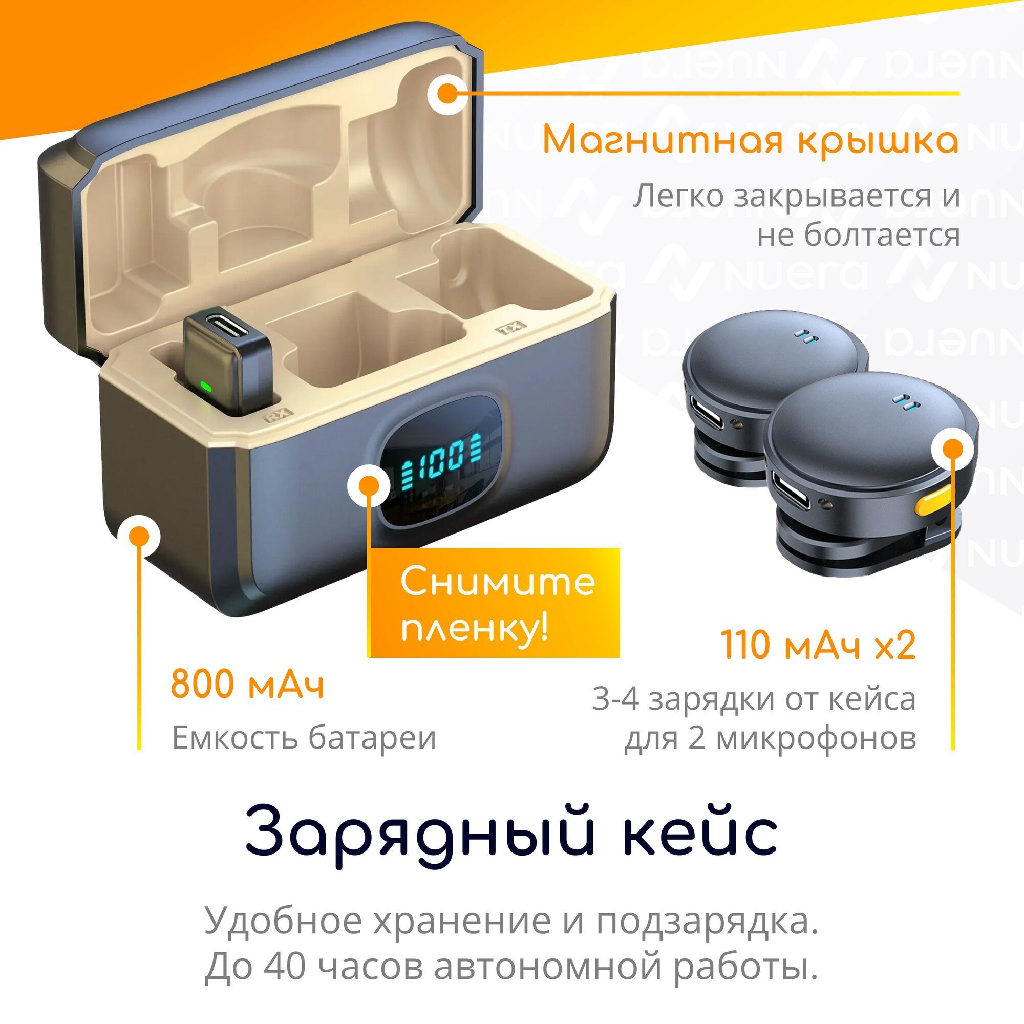 NOBUS Q8-C duo / 2 беспроводных петличных микрофона с приемником Type-C, шумоподавлением и зарядным кейсом информация:
