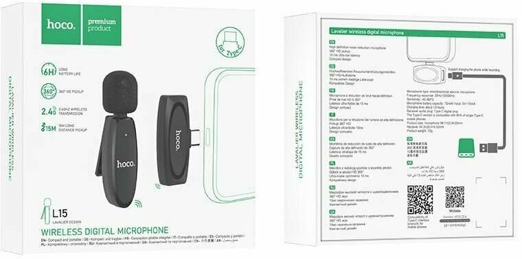 Микрофон беспроводной петличный USB Type-C Hoco L15 информация: