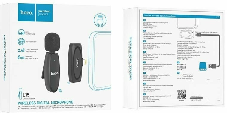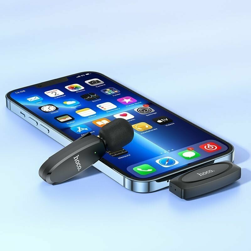Портативный микрофон Hoco L15, беспроводной, 70 мАч, Lightning, чёрный Hoco