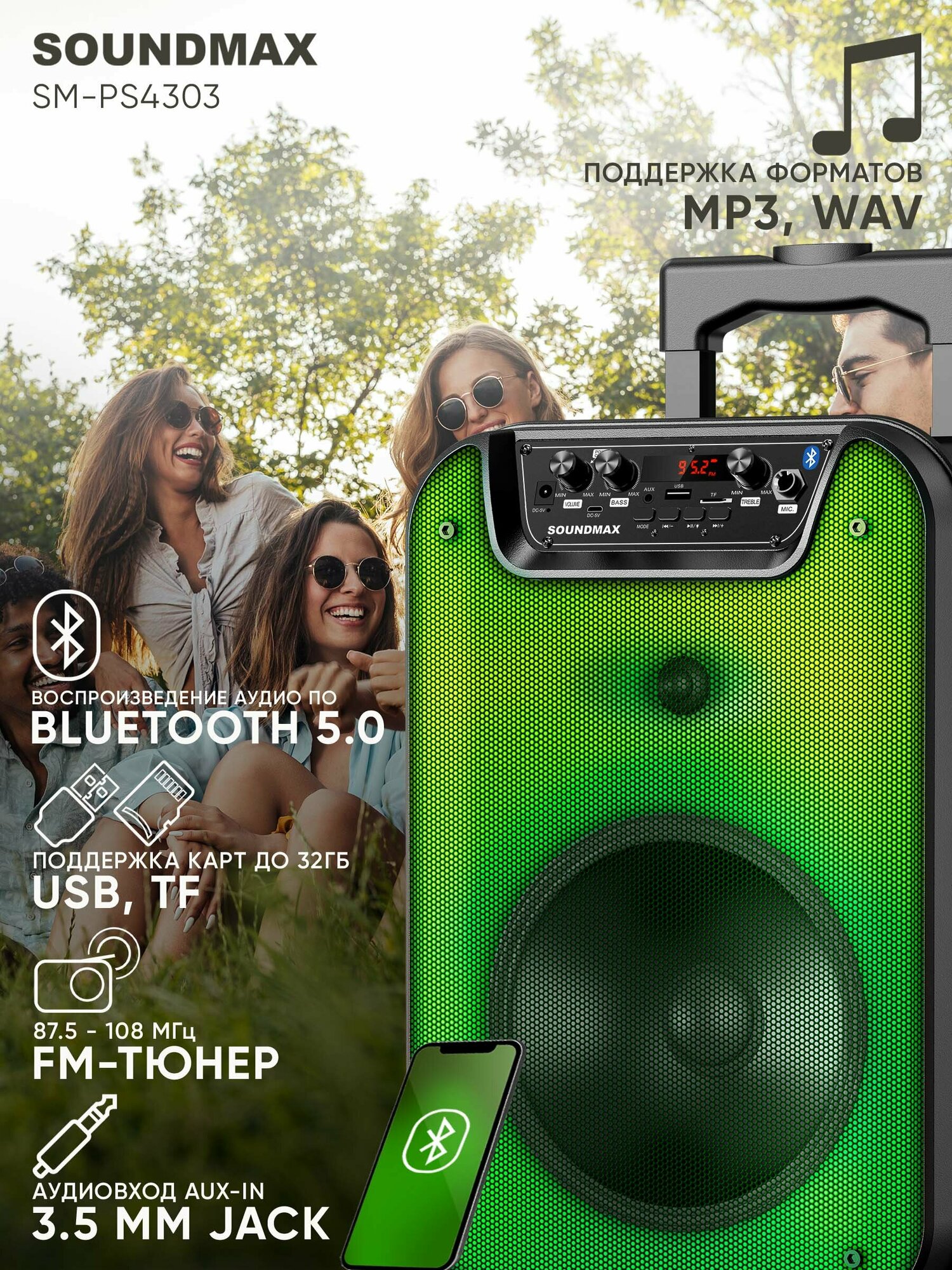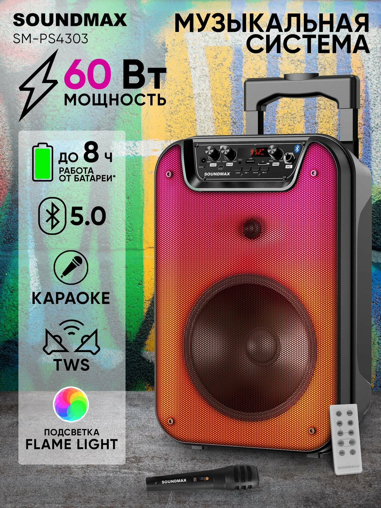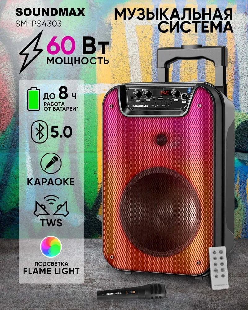 Музыкальный центр SOUNDMAX SM-PS4303(чёрный) информация: