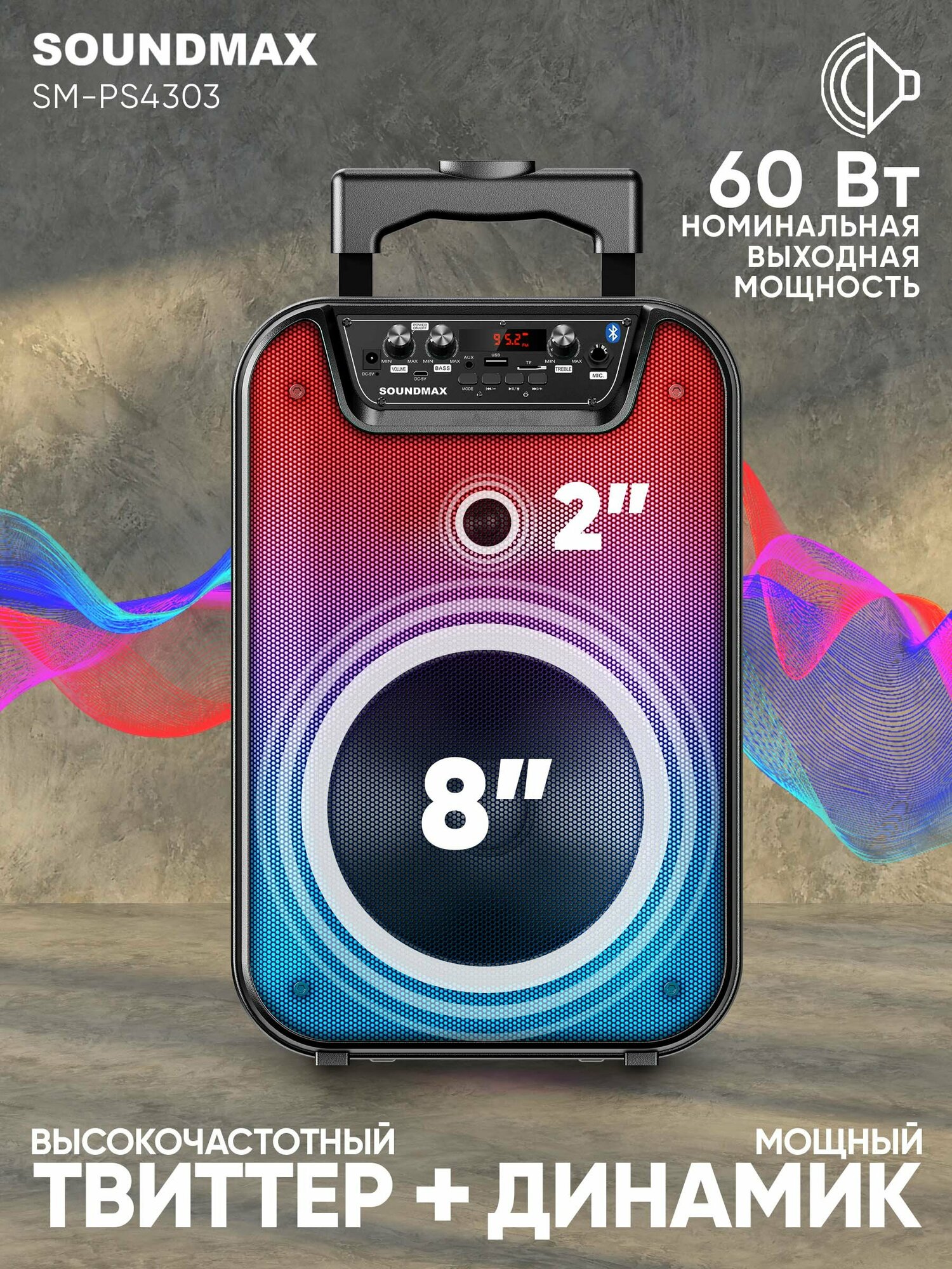 | Полная выходная мощность (RMS) | 60 Вт |