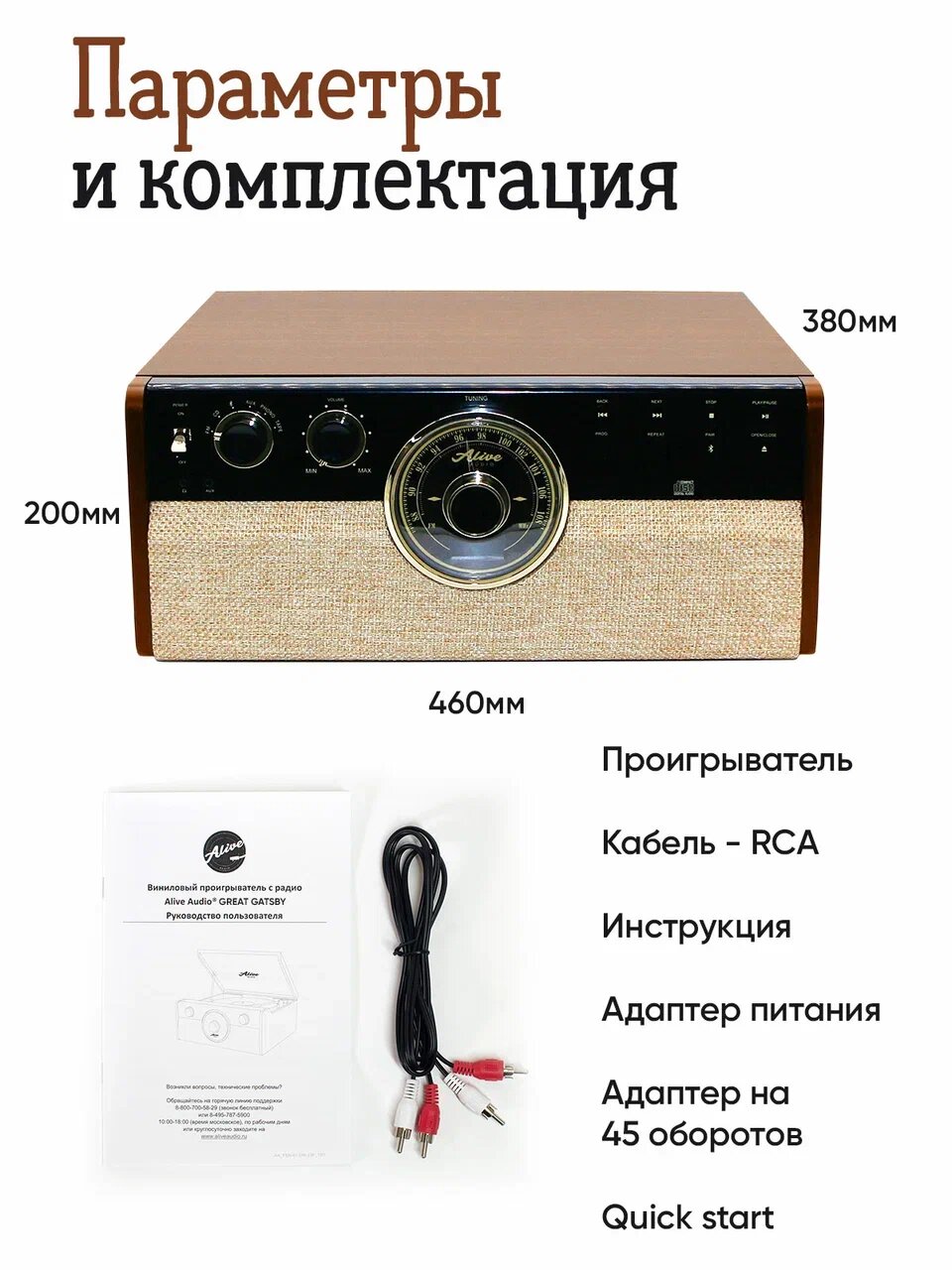 Виниловый проигрыватель Alive Audio Great Gatsby Light Wood (CD, FM-радио, кассетник, Bluetooth, встроенные динамики) информация: