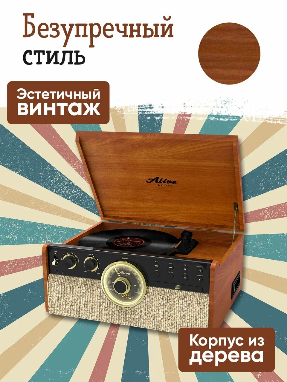 Отзывы на Виниловый проигрыватель Alive Audio Great Gatsby Light Wood (CD, FM-радио, кассетник, Bluetooth, встроенные динамики)