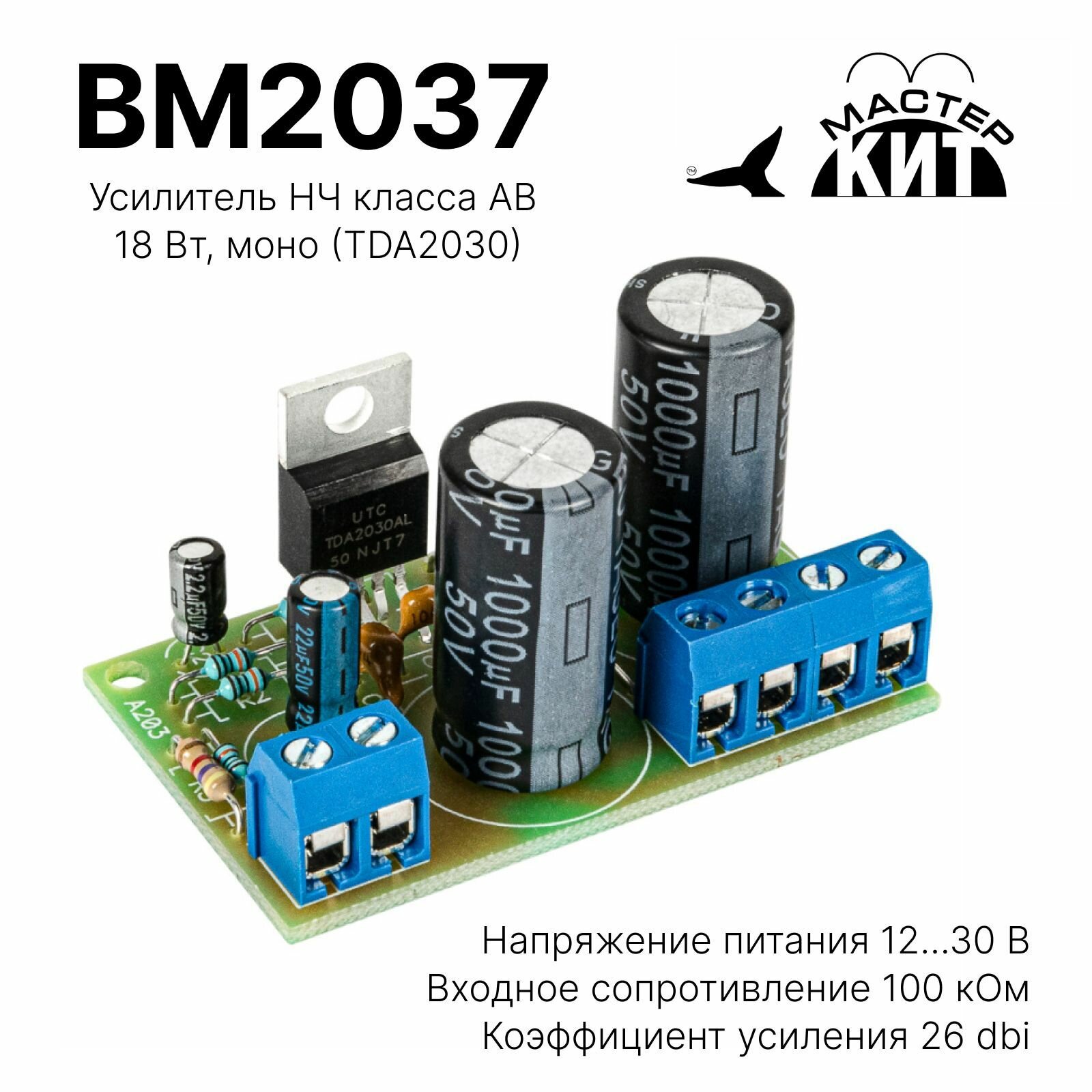 Усилитель НЧ класса АВ, 18 Вт, моно (TDA2030), BM2037 информация: