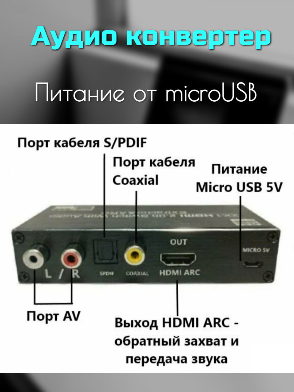 Аудио конвертер с HDMI ARC и оптическим SPDIF/коаксиальным входом информация: