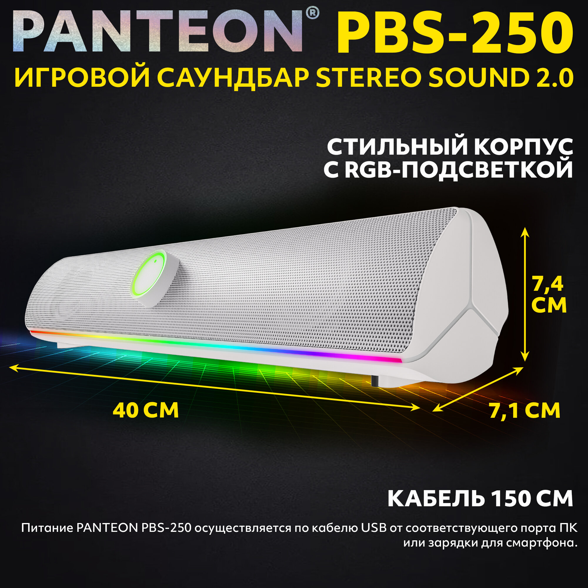 Колонка для компьютера игровой саундбар STEREO SOUND 2.0 PANTEON PBS-250 информация: