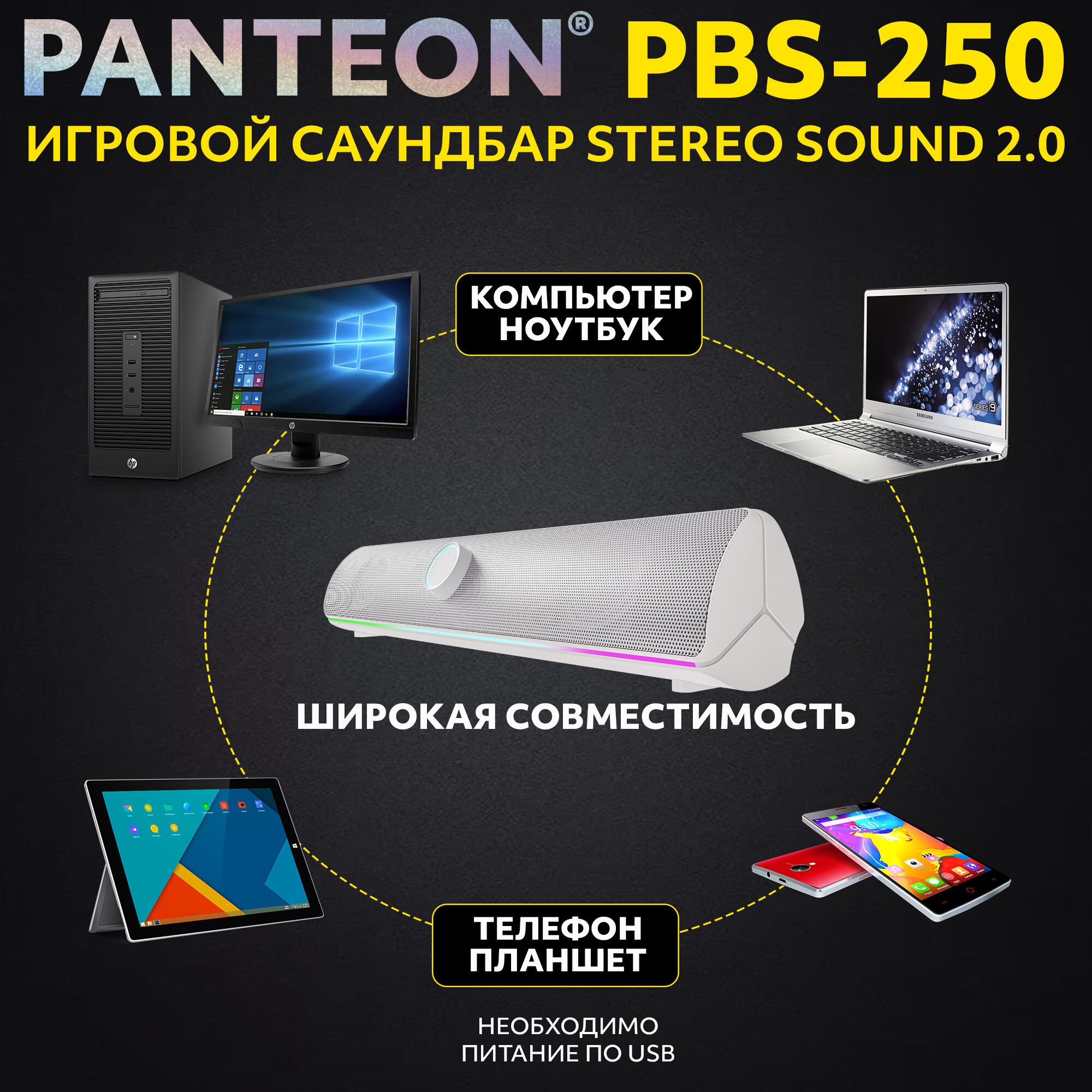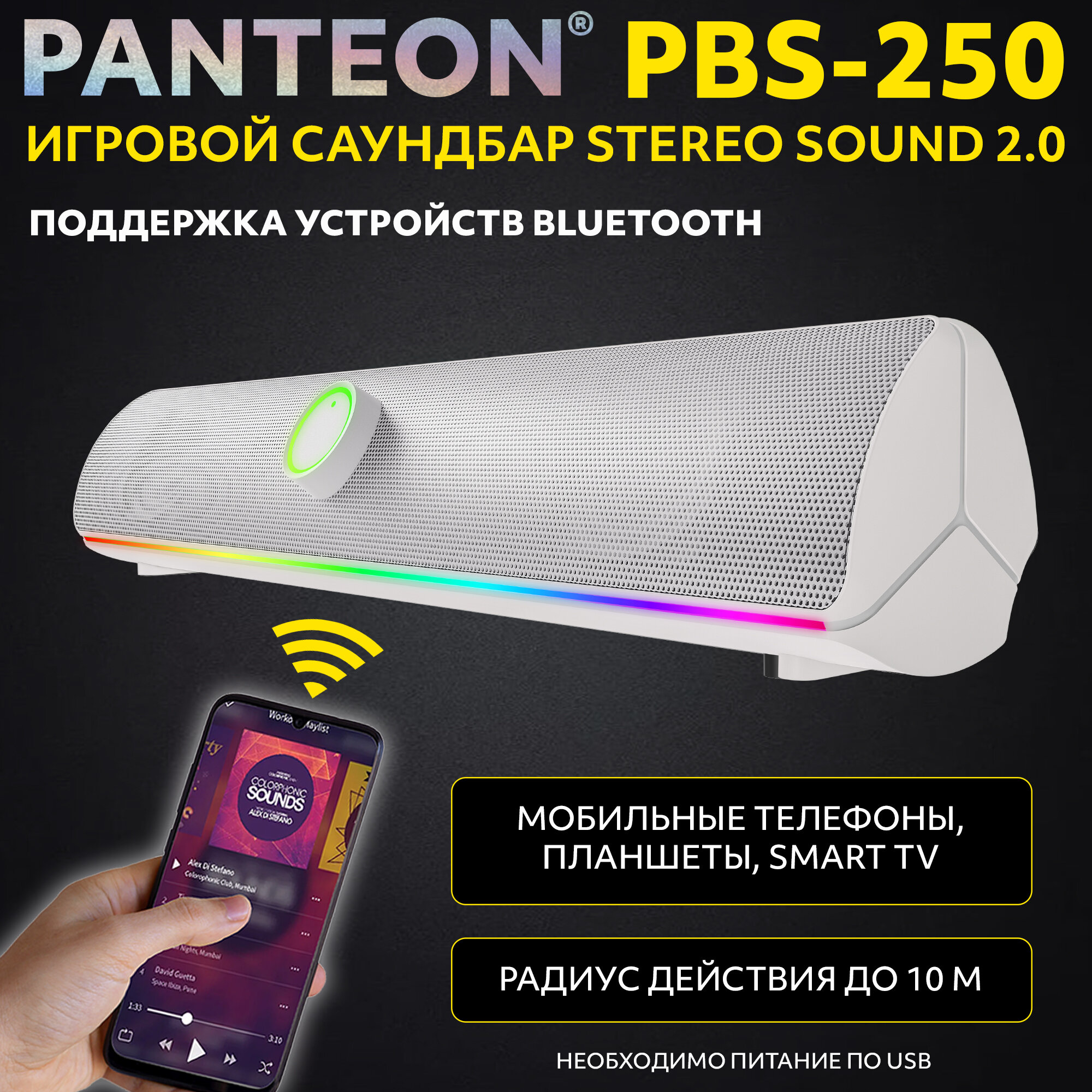 10 цен на Колонка для компьютера игровой саундбар STEREO SOUND 2.0 PANTEON PBS-250