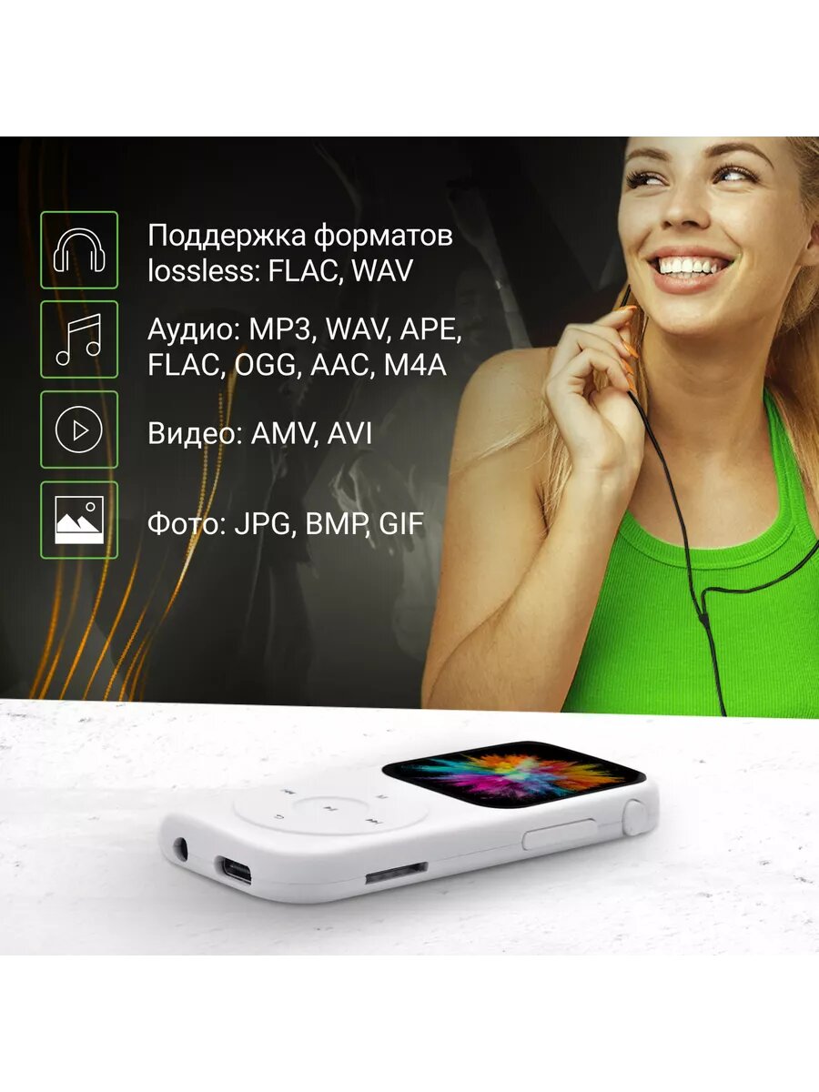 MP3-плеер 144GB с Bluetooth 5.2, встроенный динамик, FM-радио, диктофон, читалка электронных книг, мини-дизайн, для спорта и бега (с наушниками)
