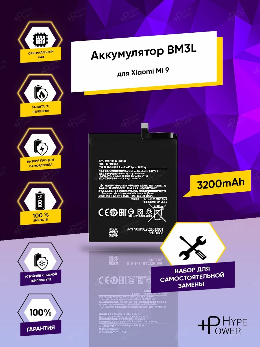 Аккумуляторная батарея для Xiaomi Mi9 BM3L / Батарея для Сяоми Ми 9 / mi 9 набор инструментов Hype Power информация: