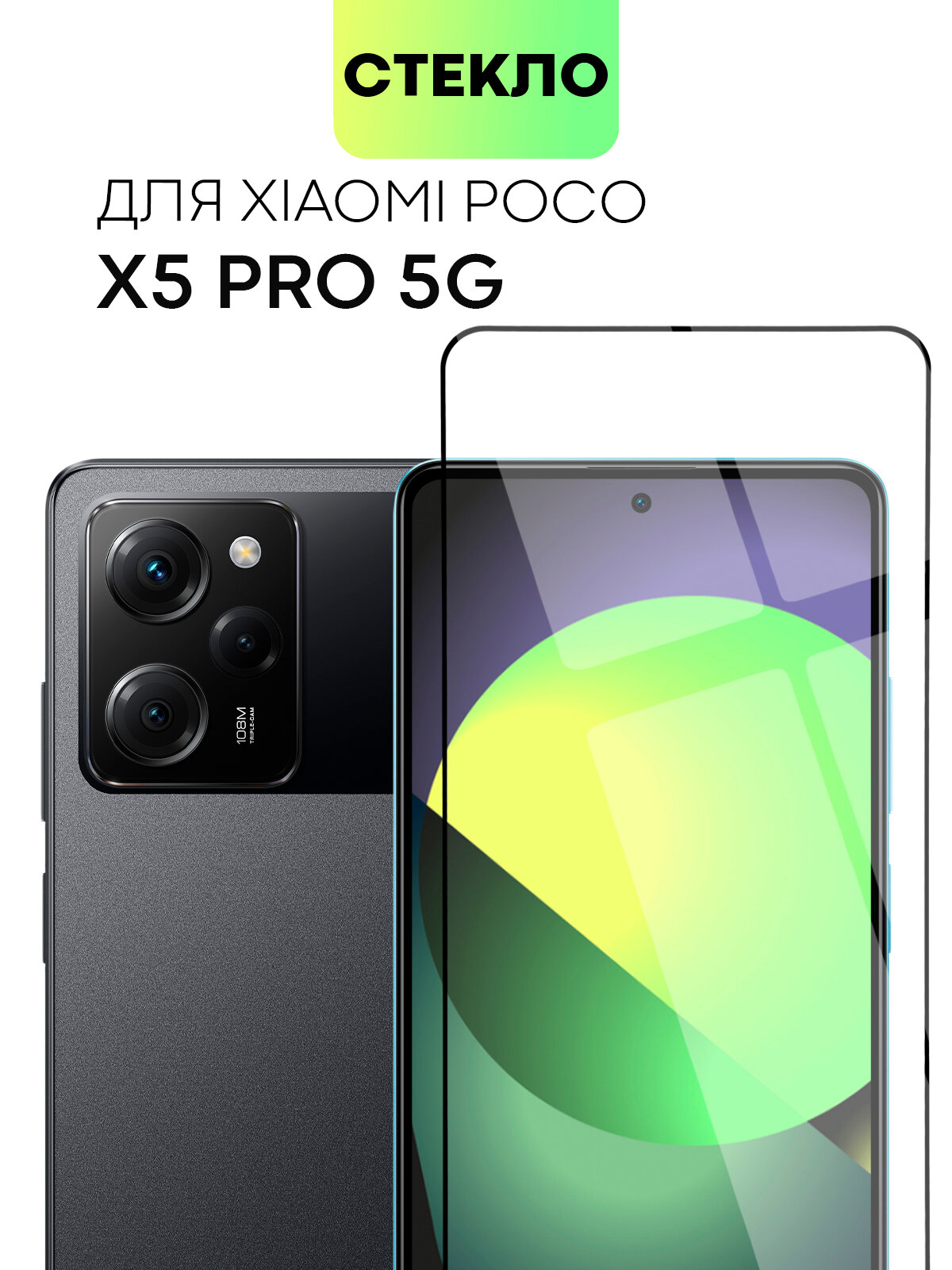10 цен на Защитное стекло BROSCORP на Xiaomi Poco X5 Pro 5G (Сяоми Поко Х5 Про 5Г), глянцевое с чёрными рамками