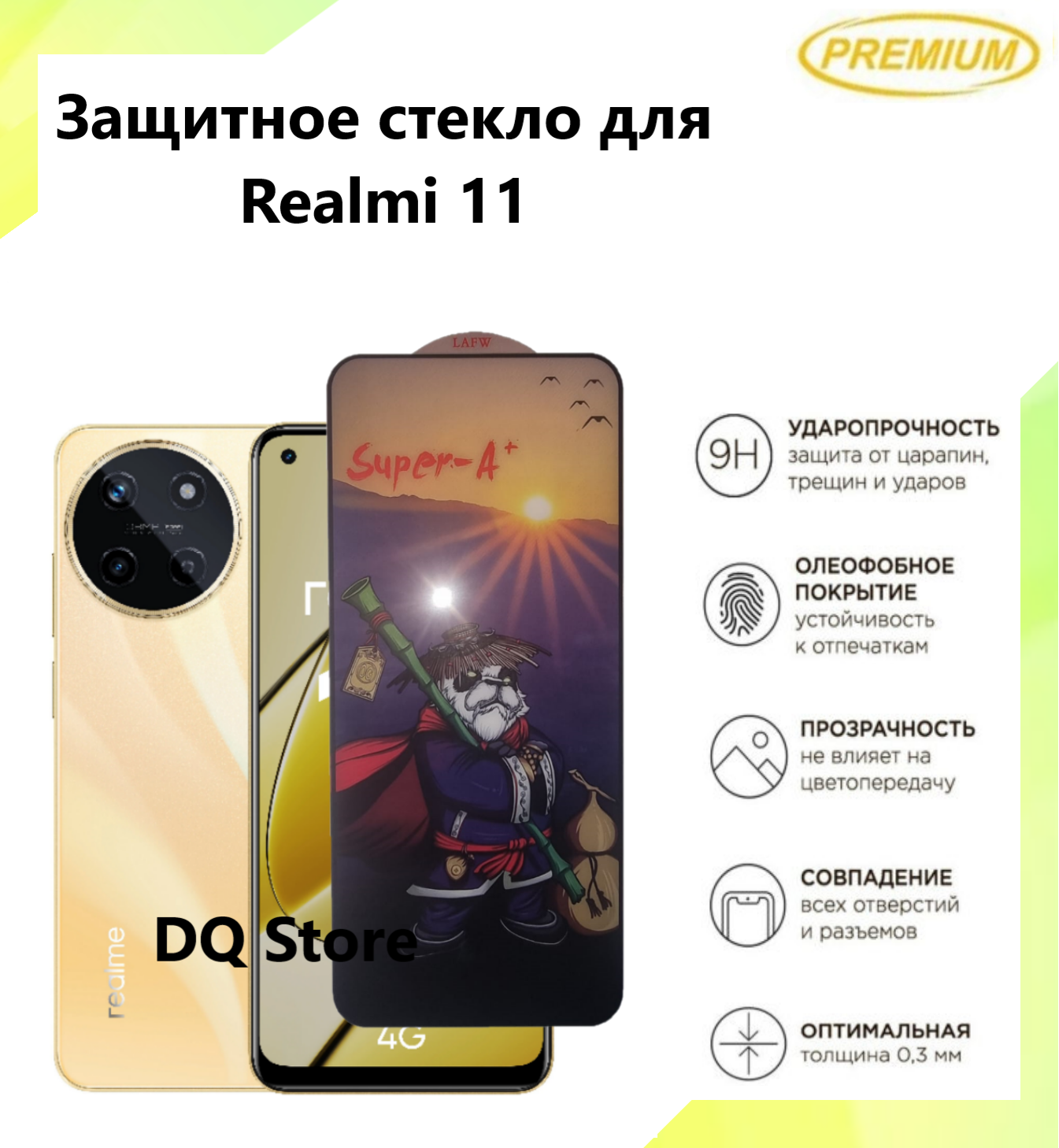 Защитное стекло на Realme 11 / Реалми 11 . Полноэкранное защитное стекло с олеофобным покрытием Premium информация: