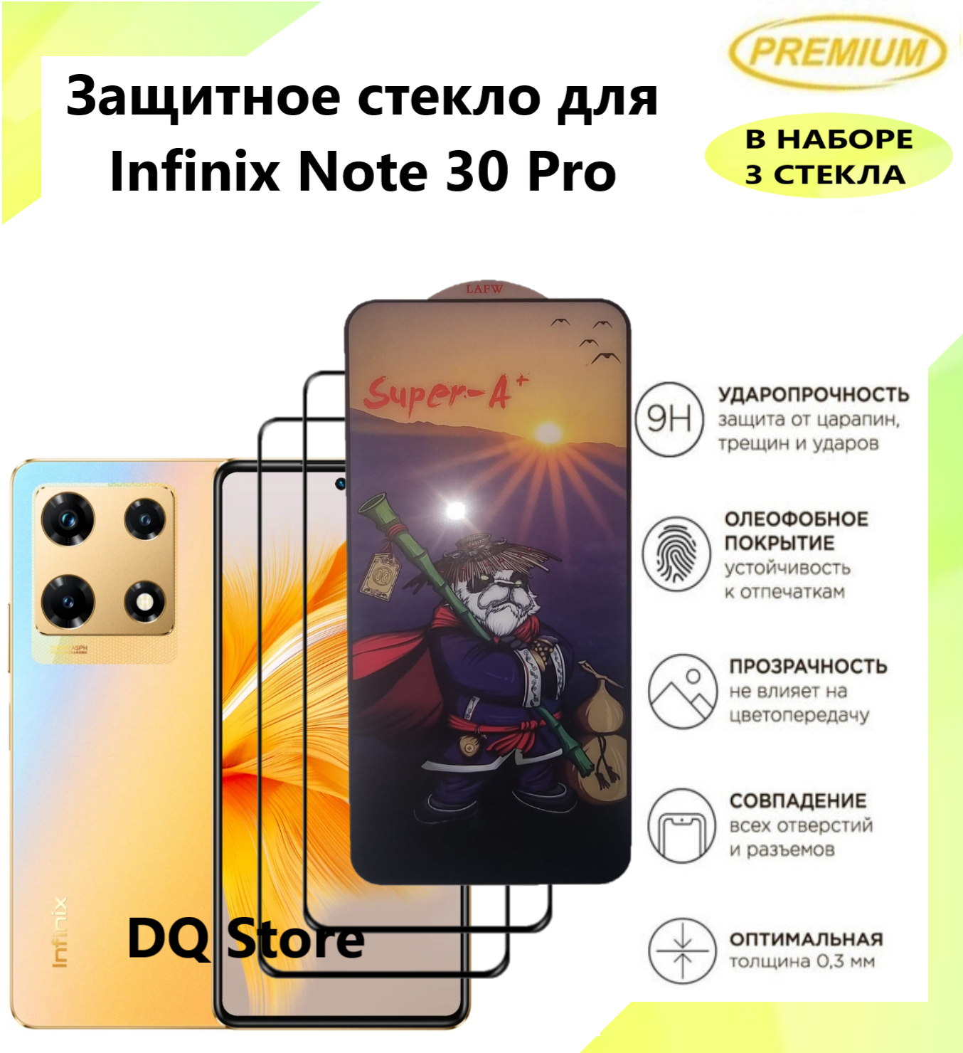 3 Защитных стекла на Infinix Note 30 Pro / Инфиникс Ноте 30 Про . Полноэкранные защитные стекла с олеофобным покрытием Premium информация: