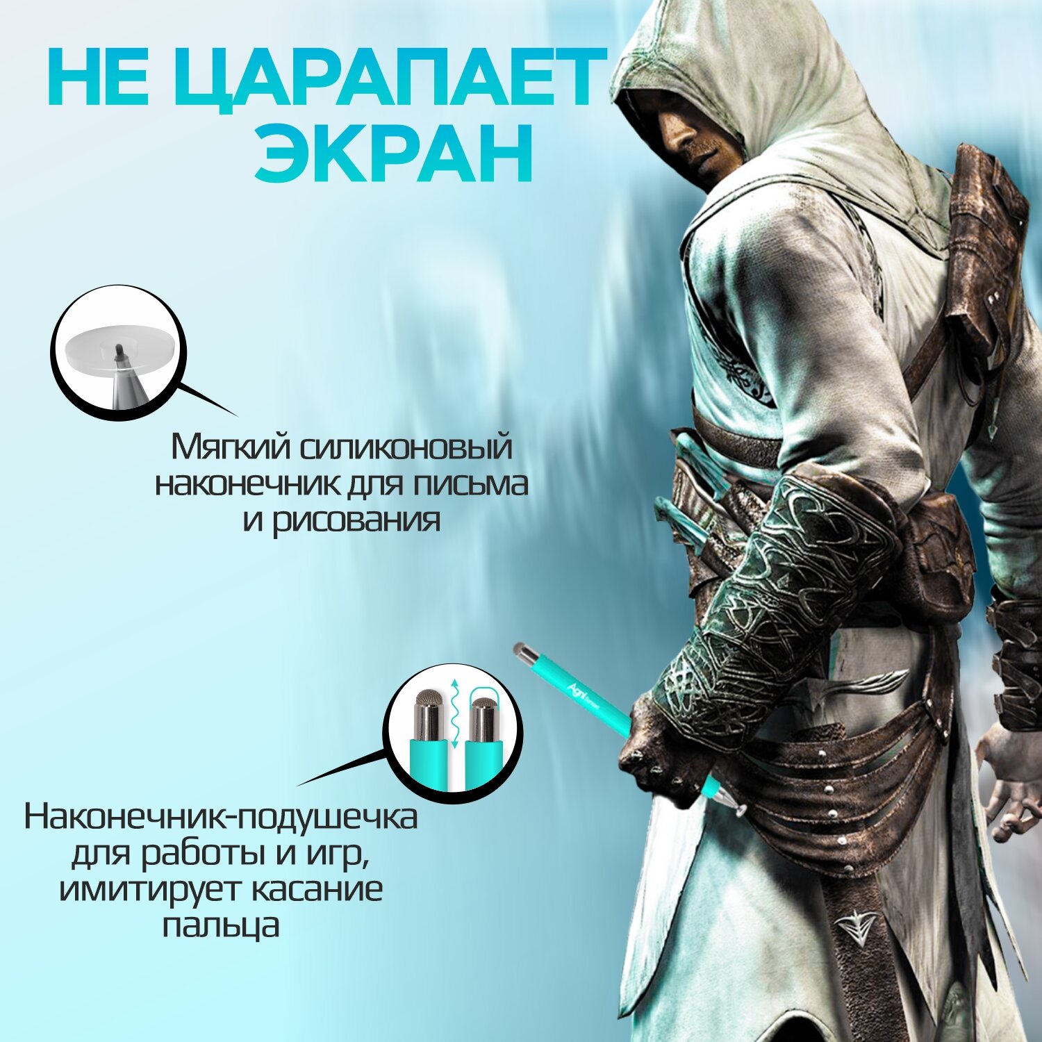 10 цен на Стилус, AGNI Senses, для телефона и планшета универсальный, двухсторонний, для iPad и Android