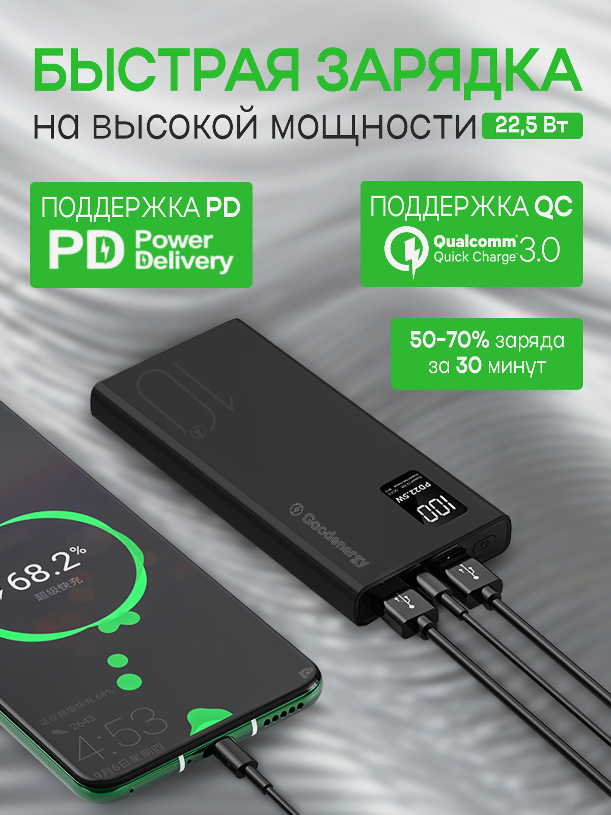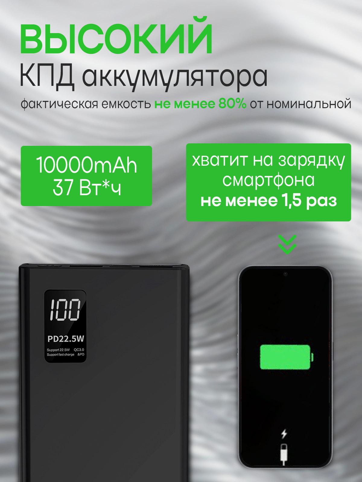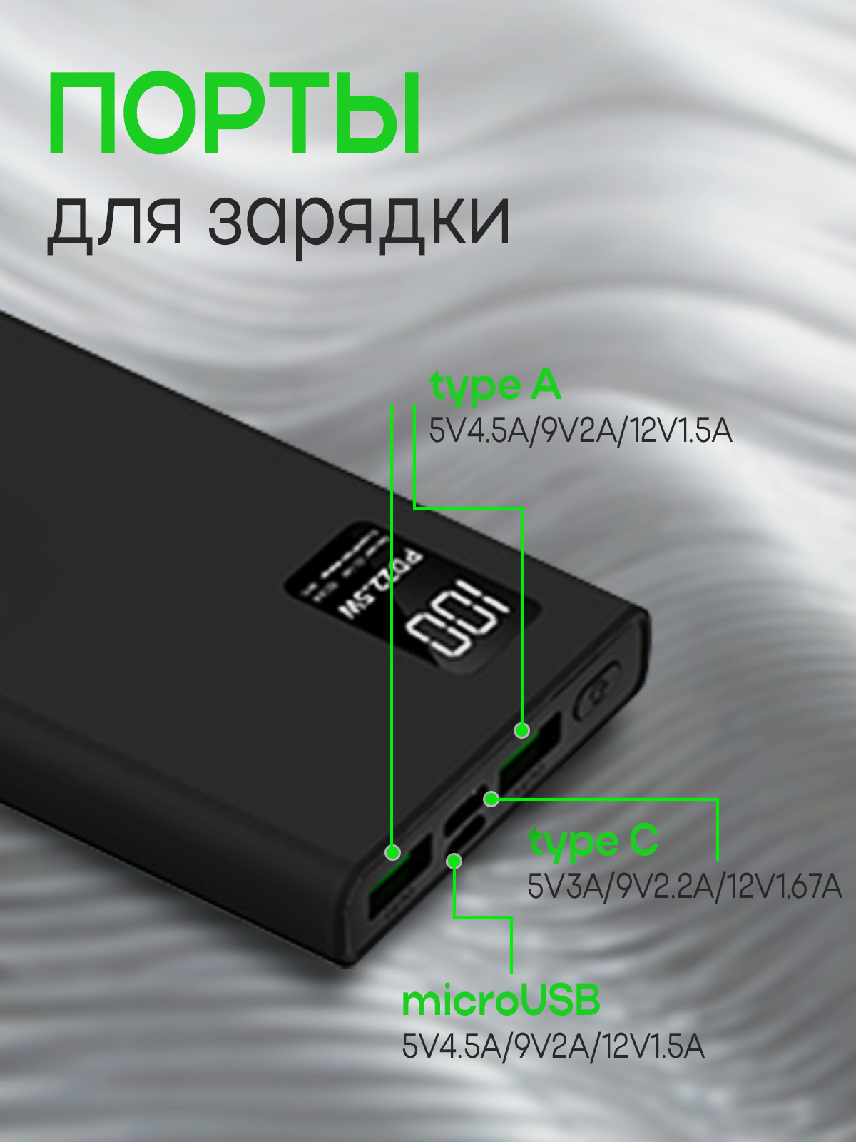 Повербанк Powerbank 10000mah с быстрой зарядкой, внешний аккумулятор для телефона iPhone, Xiaomi, Samsung информация: