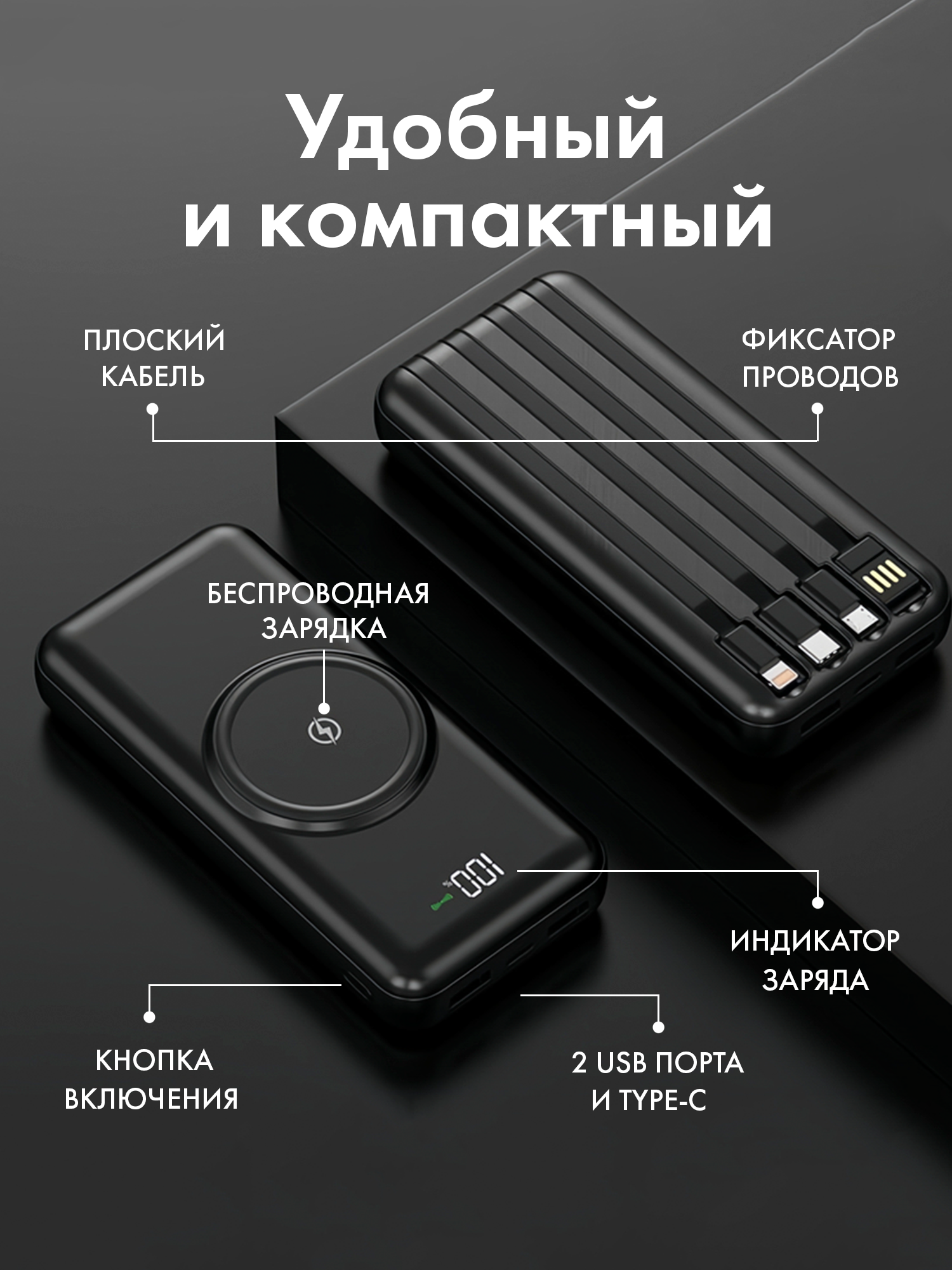 0 отзывов, средняя оценка 0. Чтобы купить «Портативный повербанк для ноутбука и смартфона с беспроводной зарядкой 30000 мАч и 4 встроенными кабелями для любых разъёмов» по лучшей цене мы сканируем авито, алиэкспресс, маркет, озон, савеловский, плеер, горбушку, беру, официальные сайты и находим минимальную. Администрация не несет ответсвенность актуальность цен на Портативный повербанк для ноутбука и смартфона с беспроводной зарядкой 30000 мАч и 4 встроенными кабелями для любых разъёмов, более подробно узнавайте на сайте магазина.