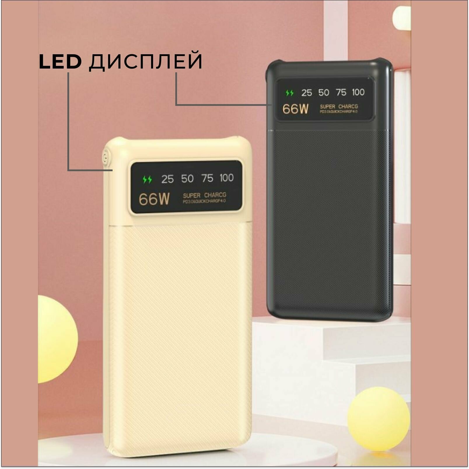 Повербанк 50000 с быстрой зарядкой и фонариком