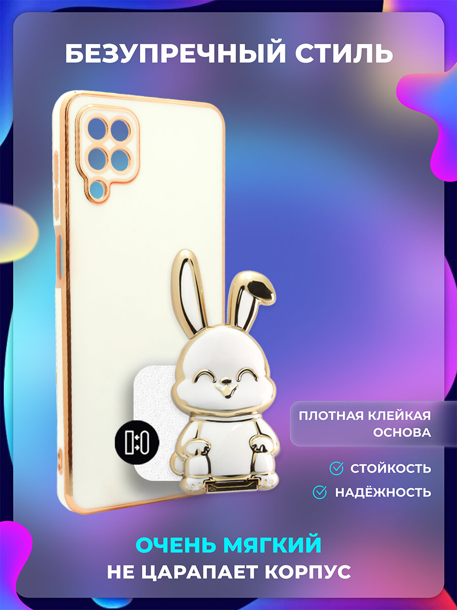 Отзывы на Чехол на Samsung A12/ M12 защитный бампер с подставкой-попсокетом Зайчик на Самсунг Галакси А12 / М12 Белый